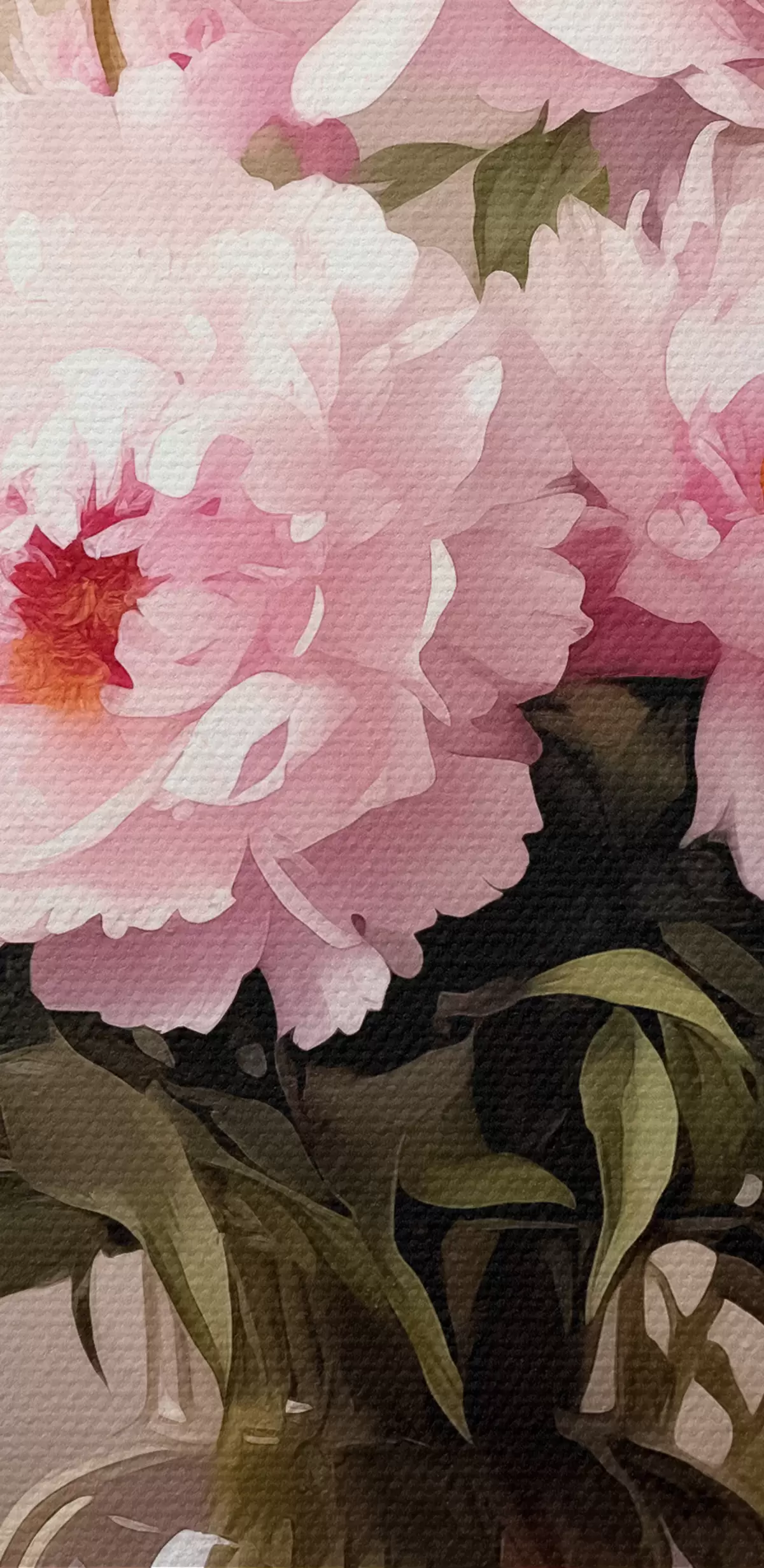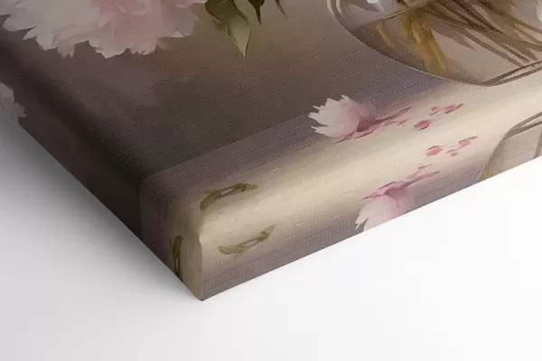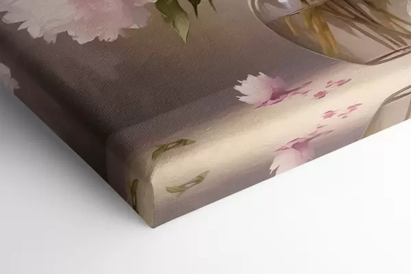 Wandbilder Rosa Pfingstrosen in einer Glasvase auf schwarzem Hintergrund, Imitation eines Ölgemäldes, Blumen Art. s38482