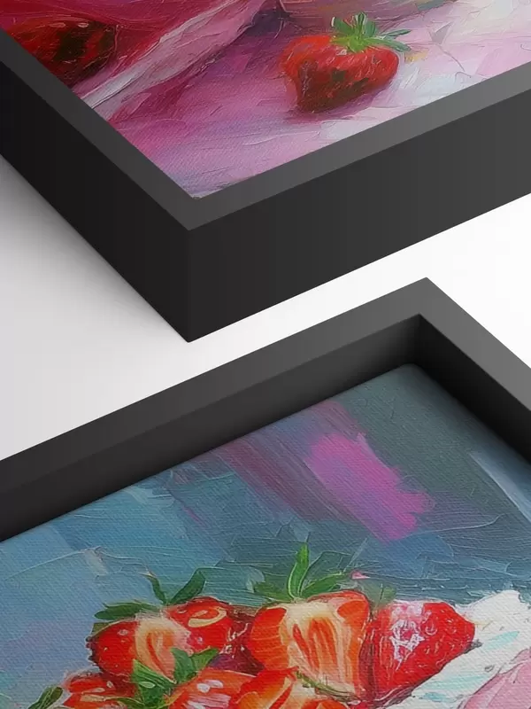 Wandbilder Erdbeerkuchen mit Sahne, Ölfarbe, große Pinselstriche, Sommerbeeren, rosa Farben s38499