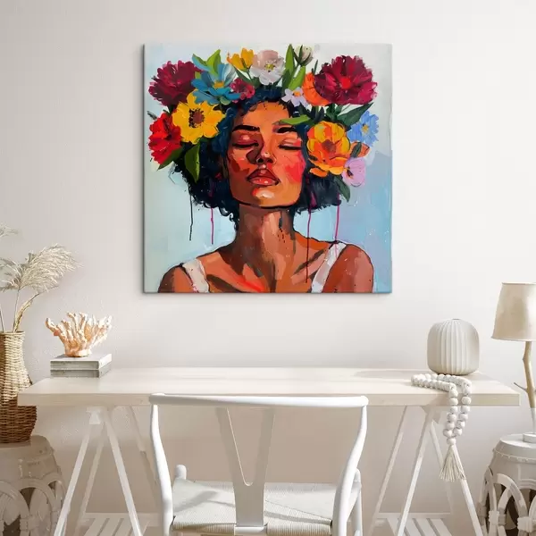 Wandbilder Gemälde einer Frau mit Blumen in ihrem Haar s38575