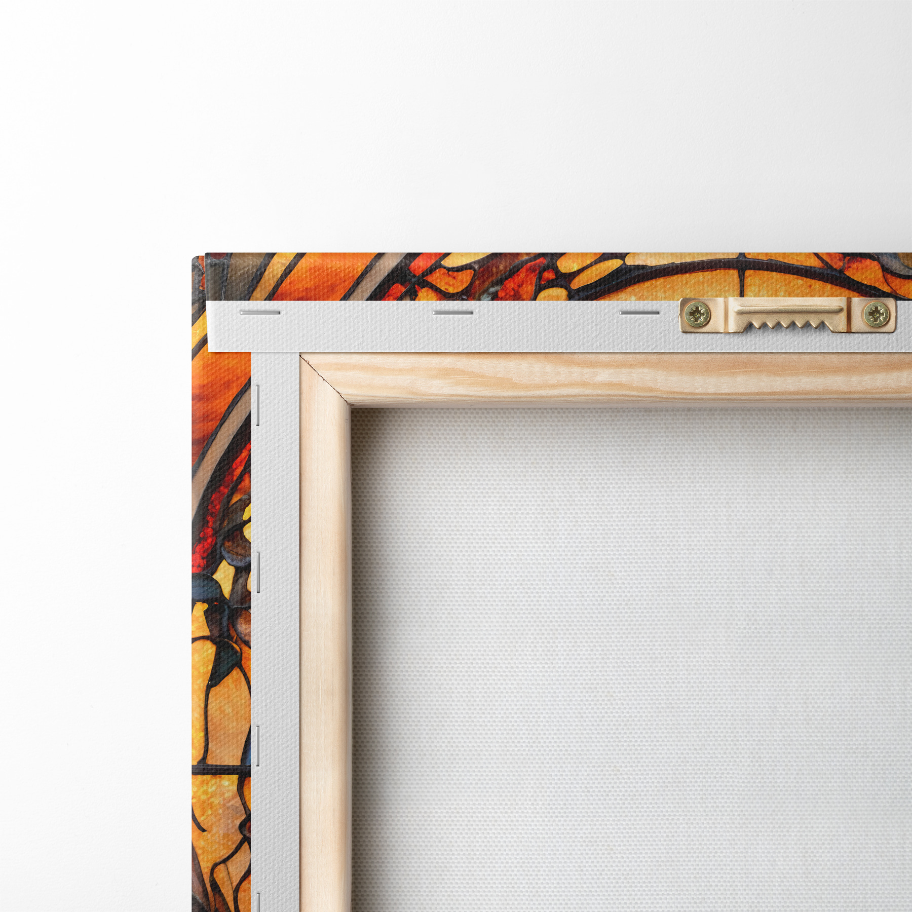Um die Leinwand auf Keilrahmen zu spannen, ohne das Bild zu beschädigen, verwenden wir ein gespiegeltes Bild.