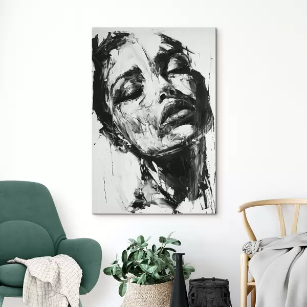 Wandbilder Porträt einer Frau mit schwarzen Pinselstrichen s38641