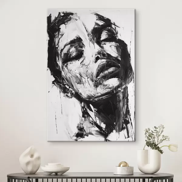 Wandbilder Porträt einer Frau mit schwarzen Pinselstrichen s38641