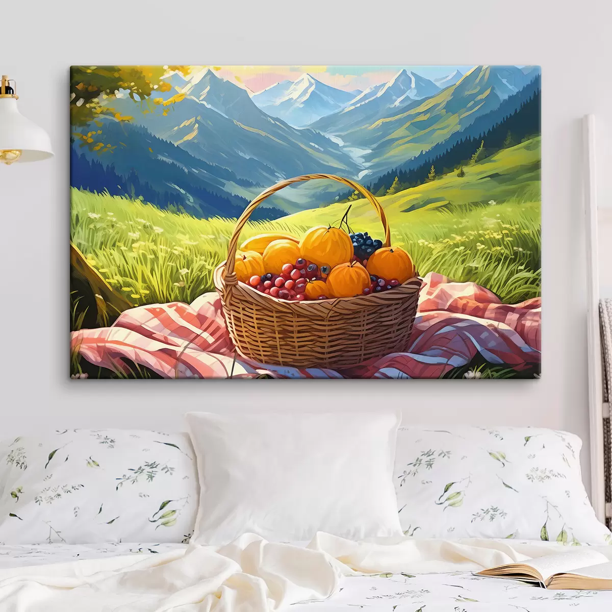 Wandbilder ein Obstkorb auf einer Wiese in den Bergen Art. s38654