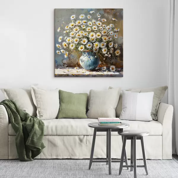 Wandbilder Vase mit Gänseblümchen auf dem Tisch Art. s38707