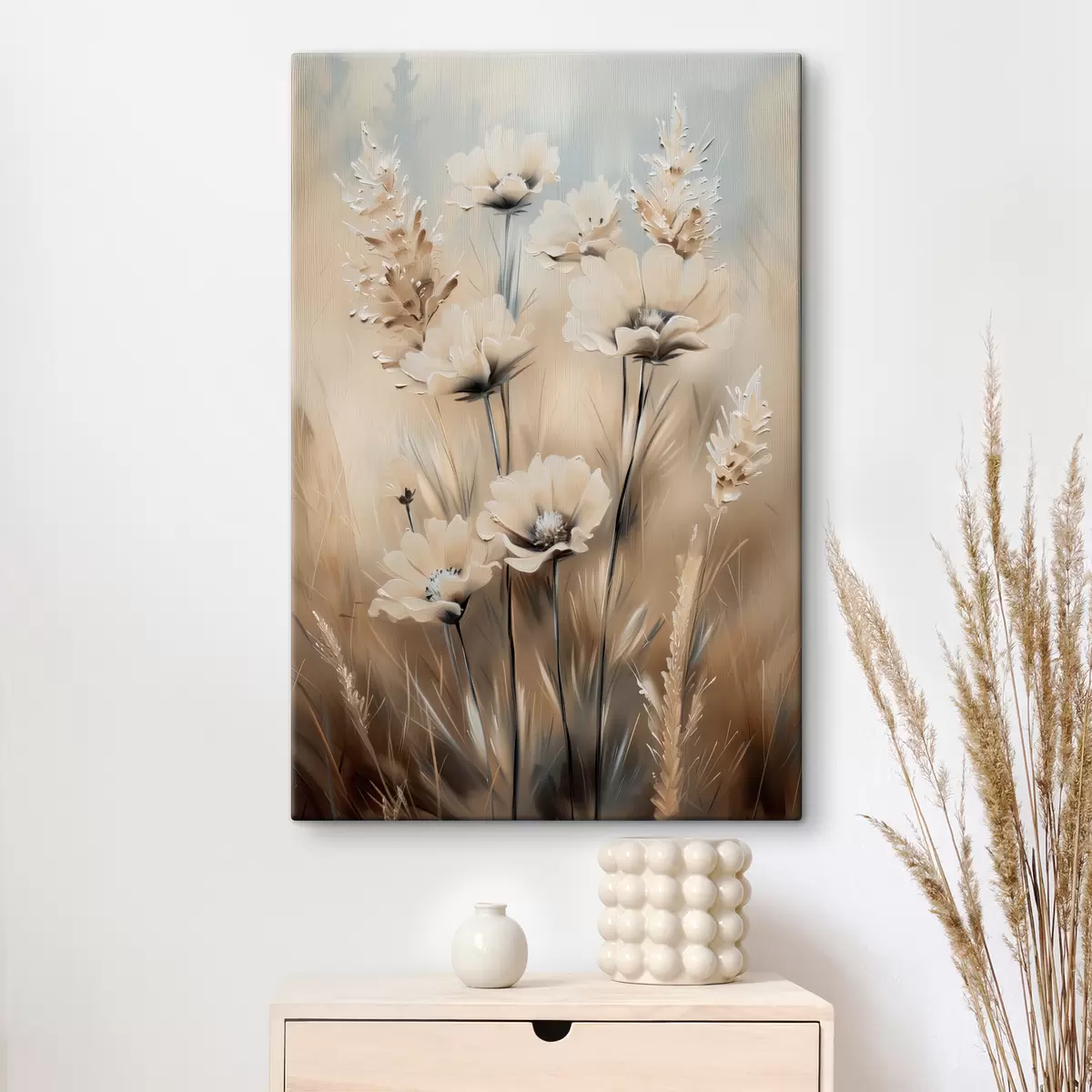 Wandbilder Blumen auf dem Feld in Beigetönen s38720