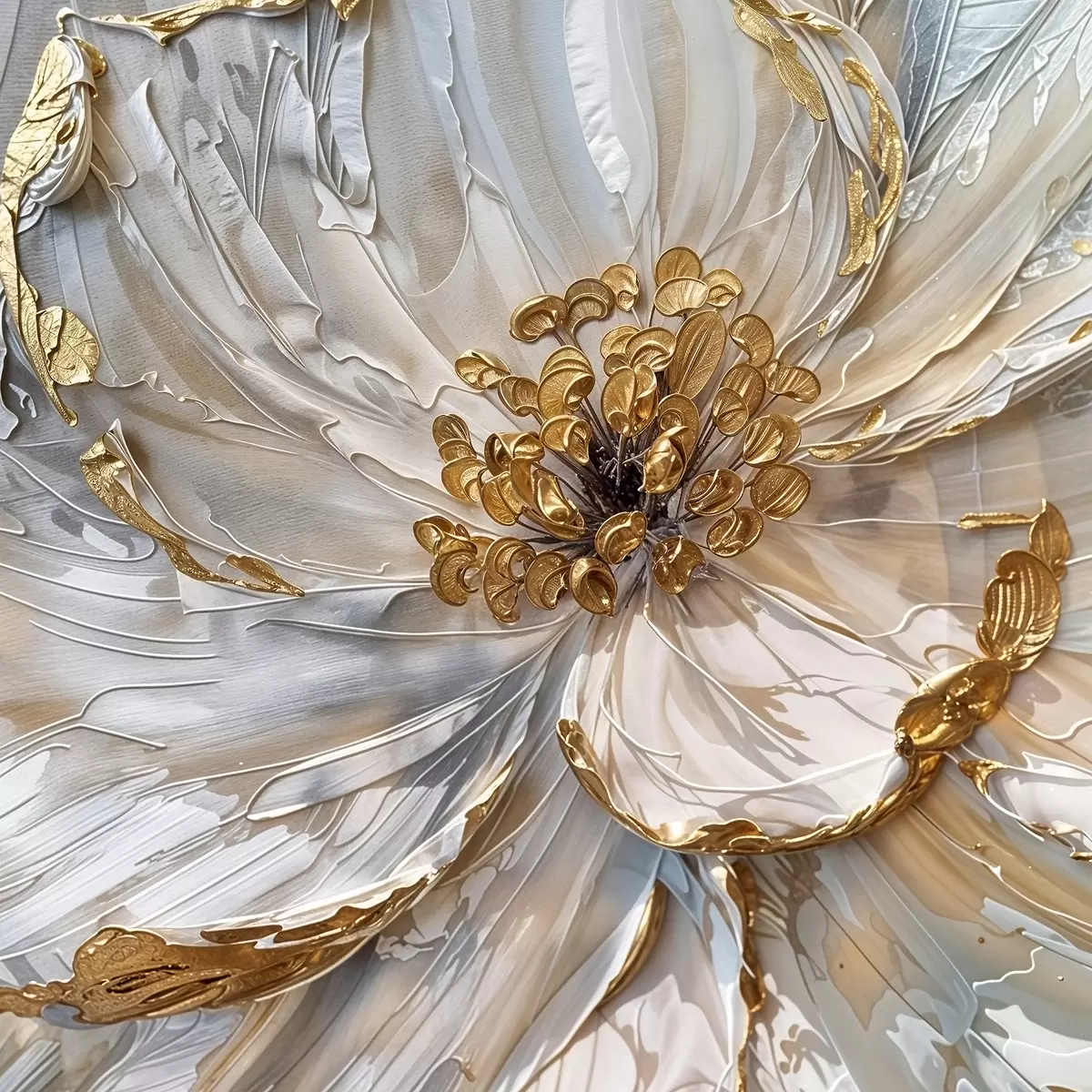 Wandbilder Eine Nahaufnahme einer großen weißen Blume mit Staubgefäßen in der Mitte, Ölgemälde-Kunstdekor s38755