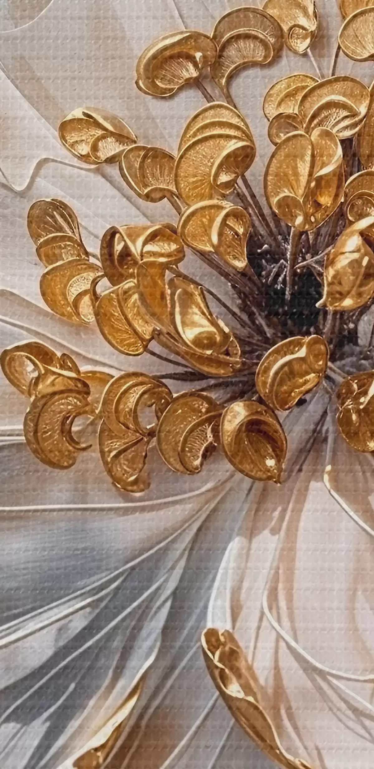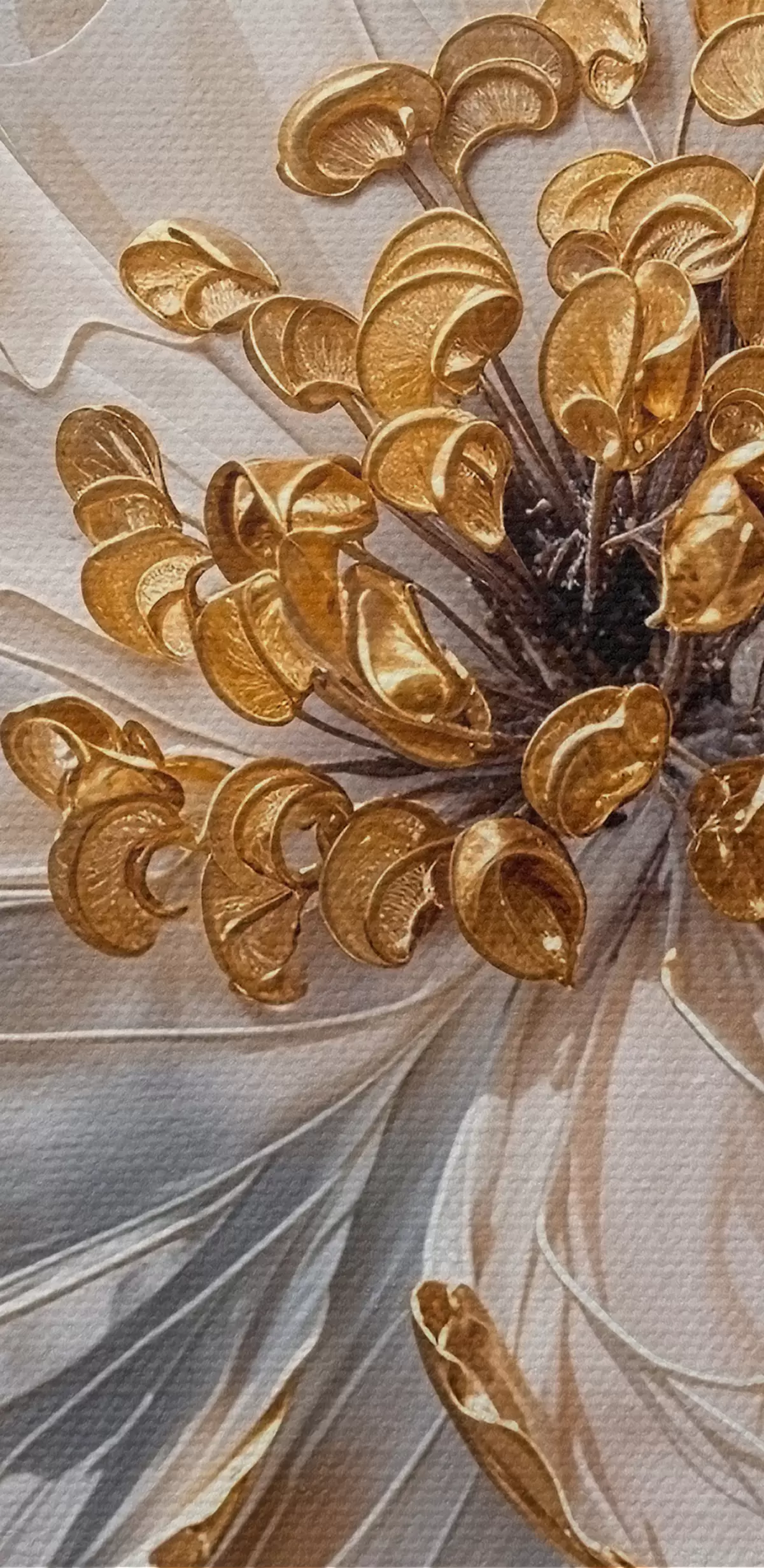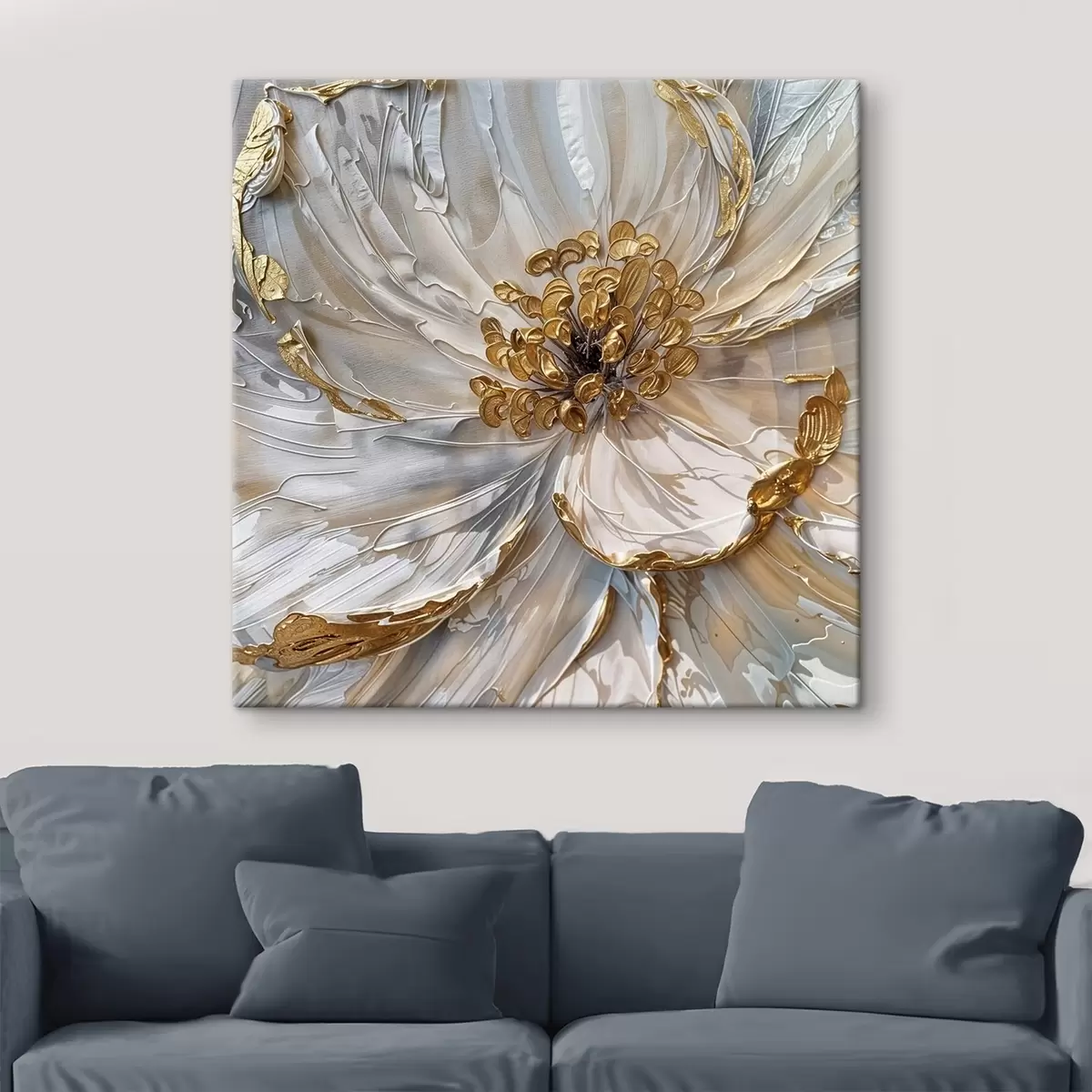 Wandbilder Eine Nahaufnahme einer großen weißen Blume mit Staubgefäßen in der Mitte, Ölgemälde-Kunstdekor Art. s38755