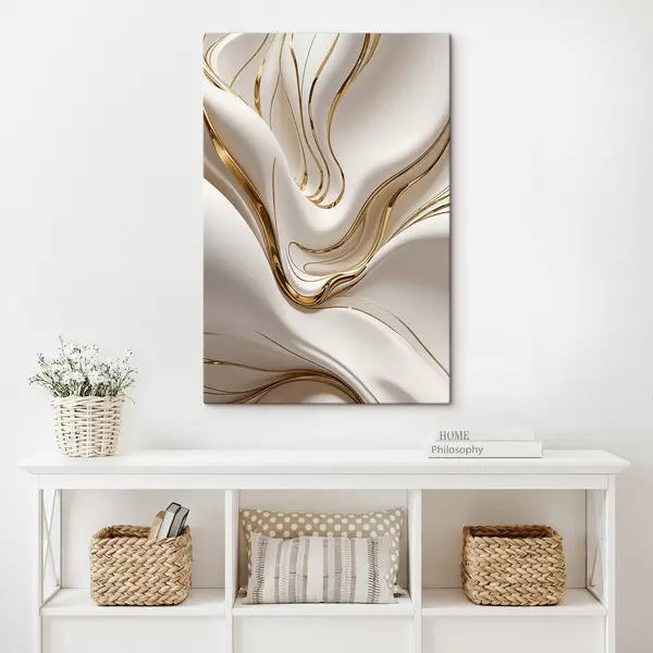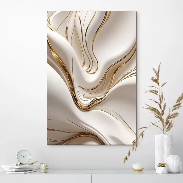 Wandbilder Fließende weiße abstrakte Formen, die an flüssiges oder geschmolzenes Metall erinnern, dynamische Komposition Art. s38767