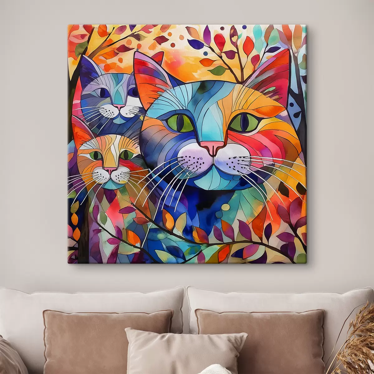 Wandbilder Mehrfarbige Abstraktion mit Katzen s38814