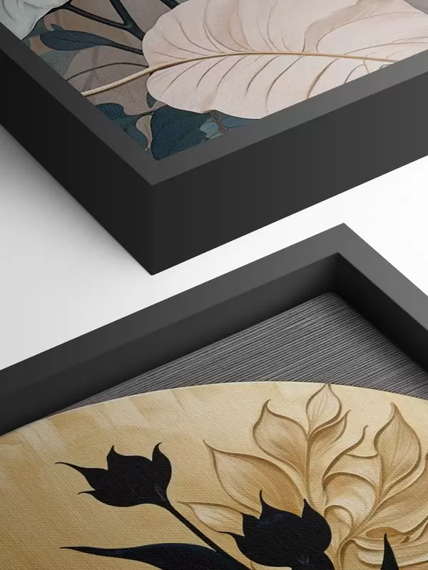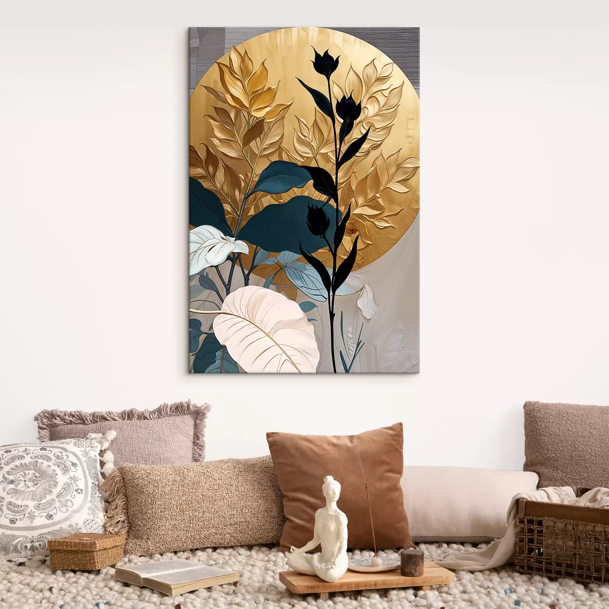 Wandbilder Abstrakte florale Komposition mit großen Blättern und dunklen Silhouetten Art. s38822