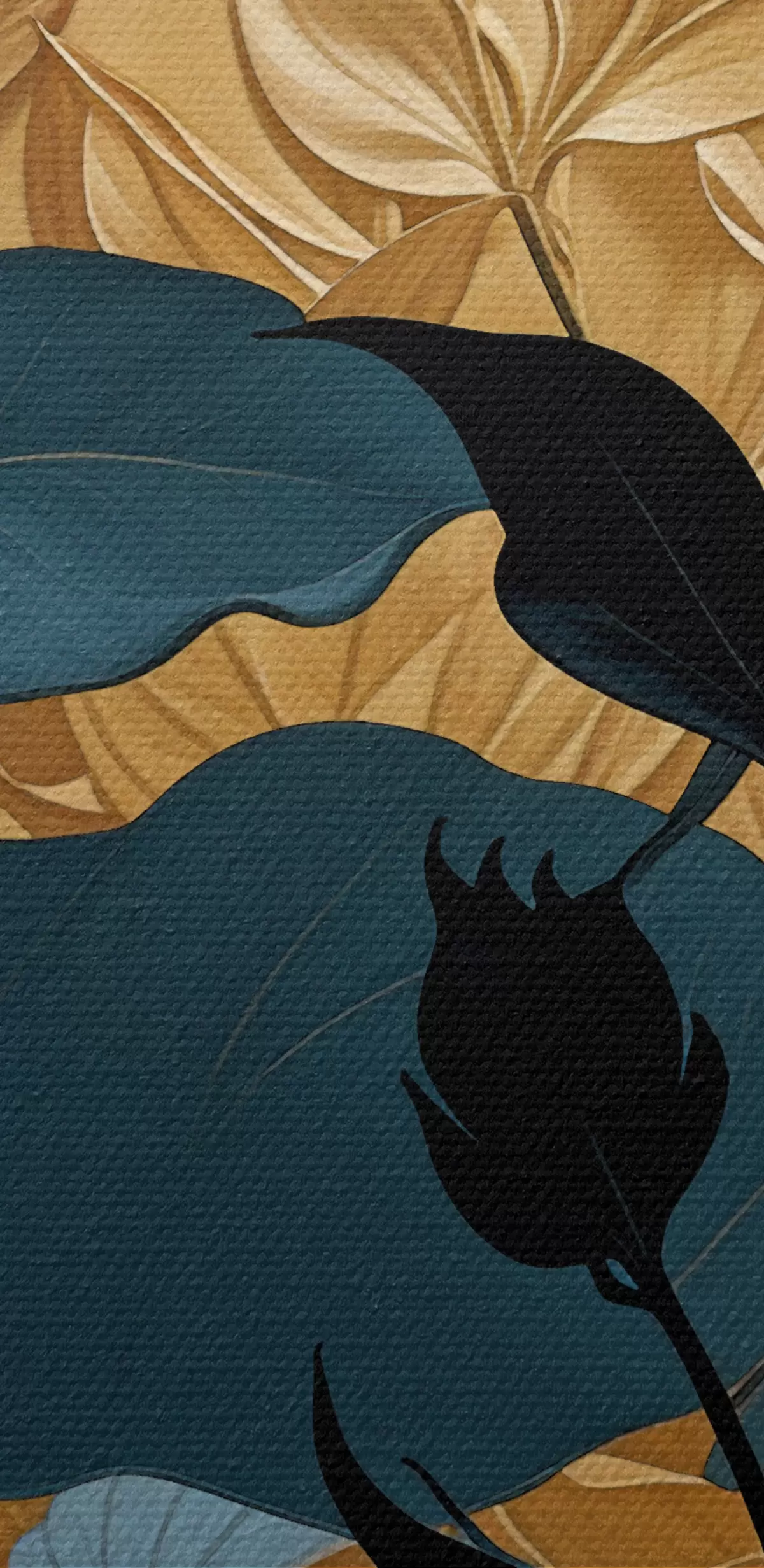 Wandbilder Abstrakte florale Komposition mit großen Blättern und dunklen Silhouetten s38822