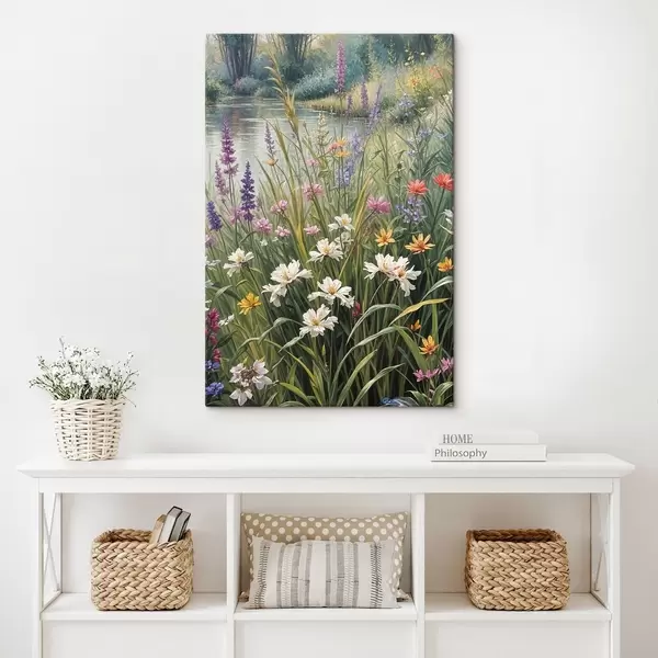 Wandbilder Wildblumen und hohe Gräser. Die Gesamtszene zeigt eine lebendige, natürliche Landschaft Art. s38829