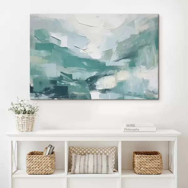 Wandbilder Abstraktion aus großen blauen und weißen Strichen, Nachahmung der Ölmalerei, Minimalismus Art. s38915