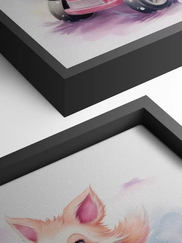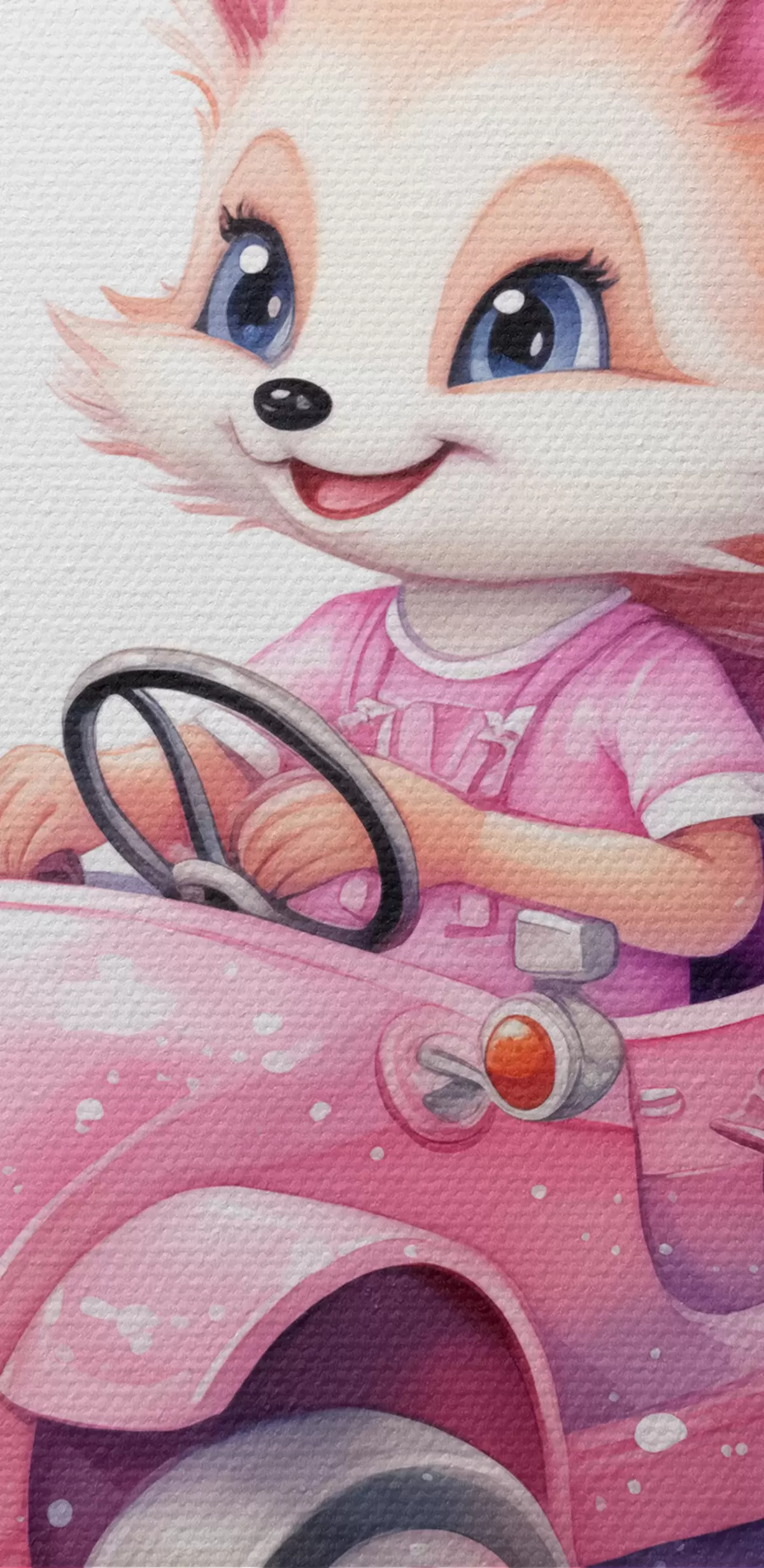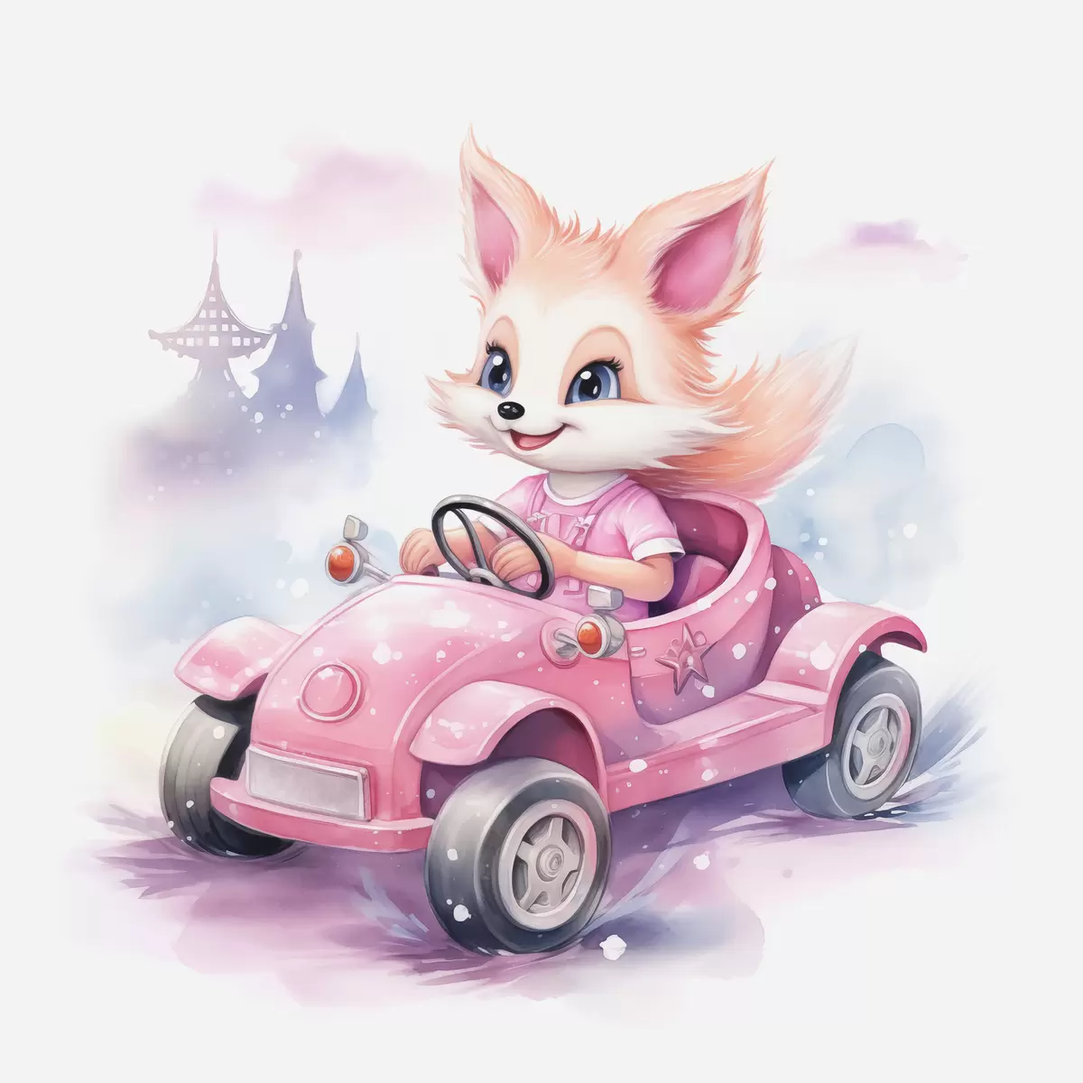 Wandbilder Kleiner Fuchs fährt ein rosa Auto Aquarell-Illustration für Kinder Art. s38943