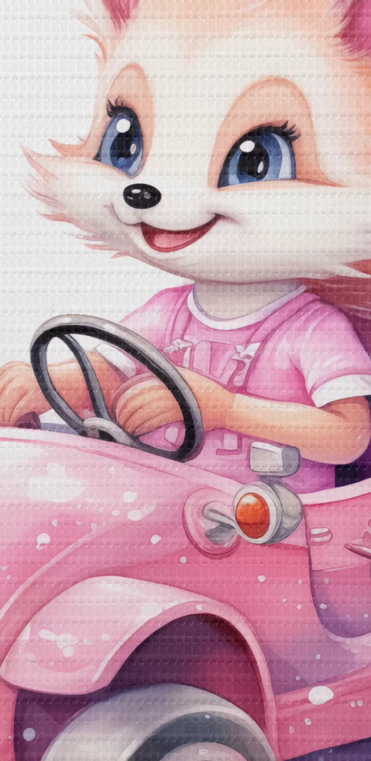 Wandbilder Kleiner Fuchs fährt ein rosa Auto Aquarell-Illustration für Kinder s38943