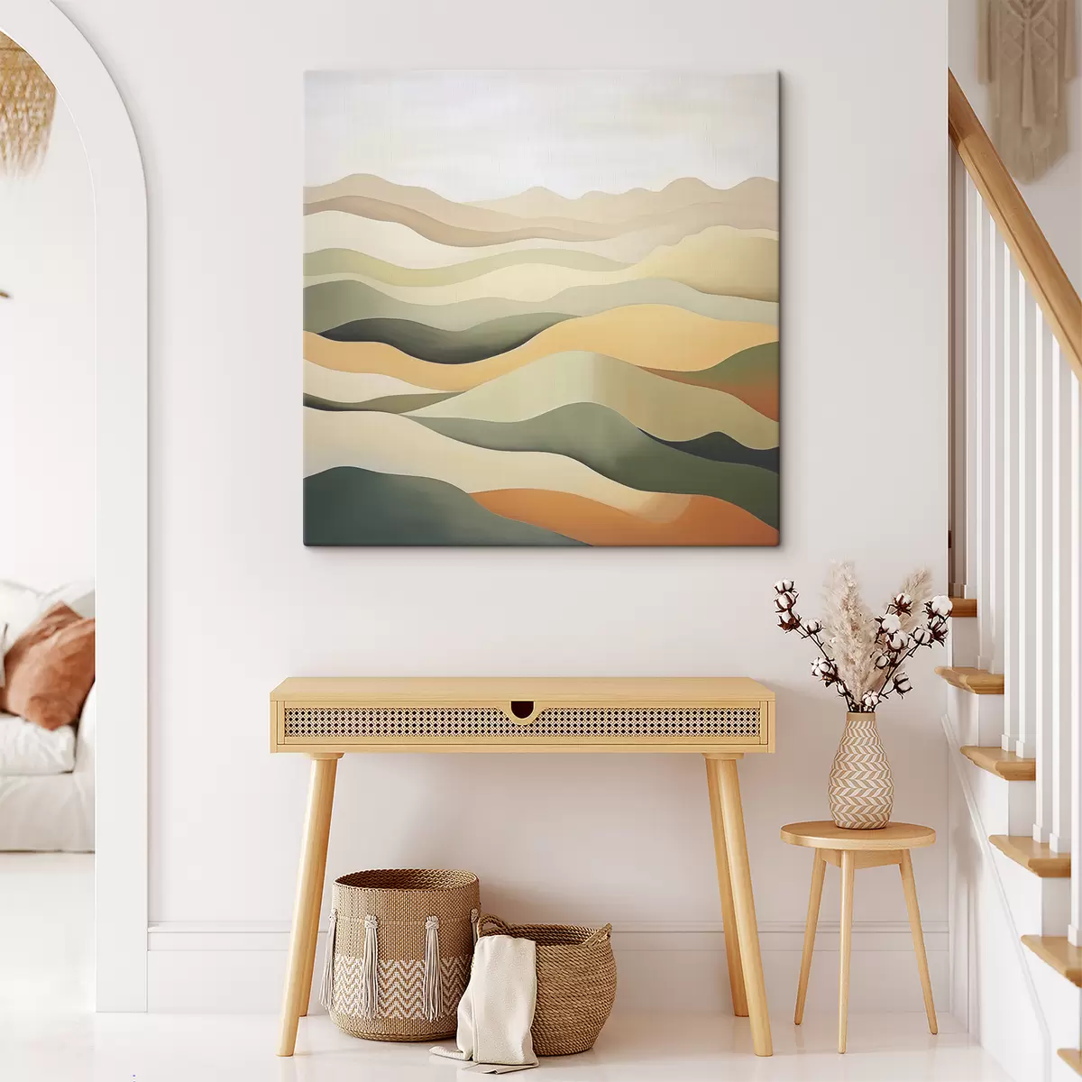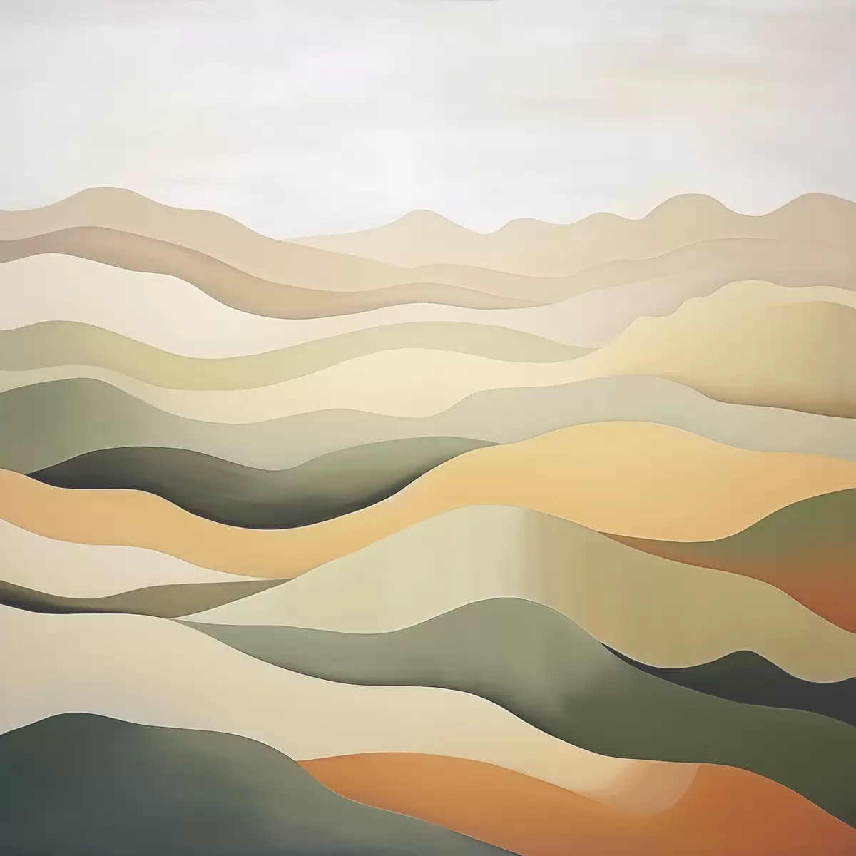 Wandbilder Hügel, abstrakte Landschaft, Gouache, Grün, Ocker, Sepia, Grau Art. s38952