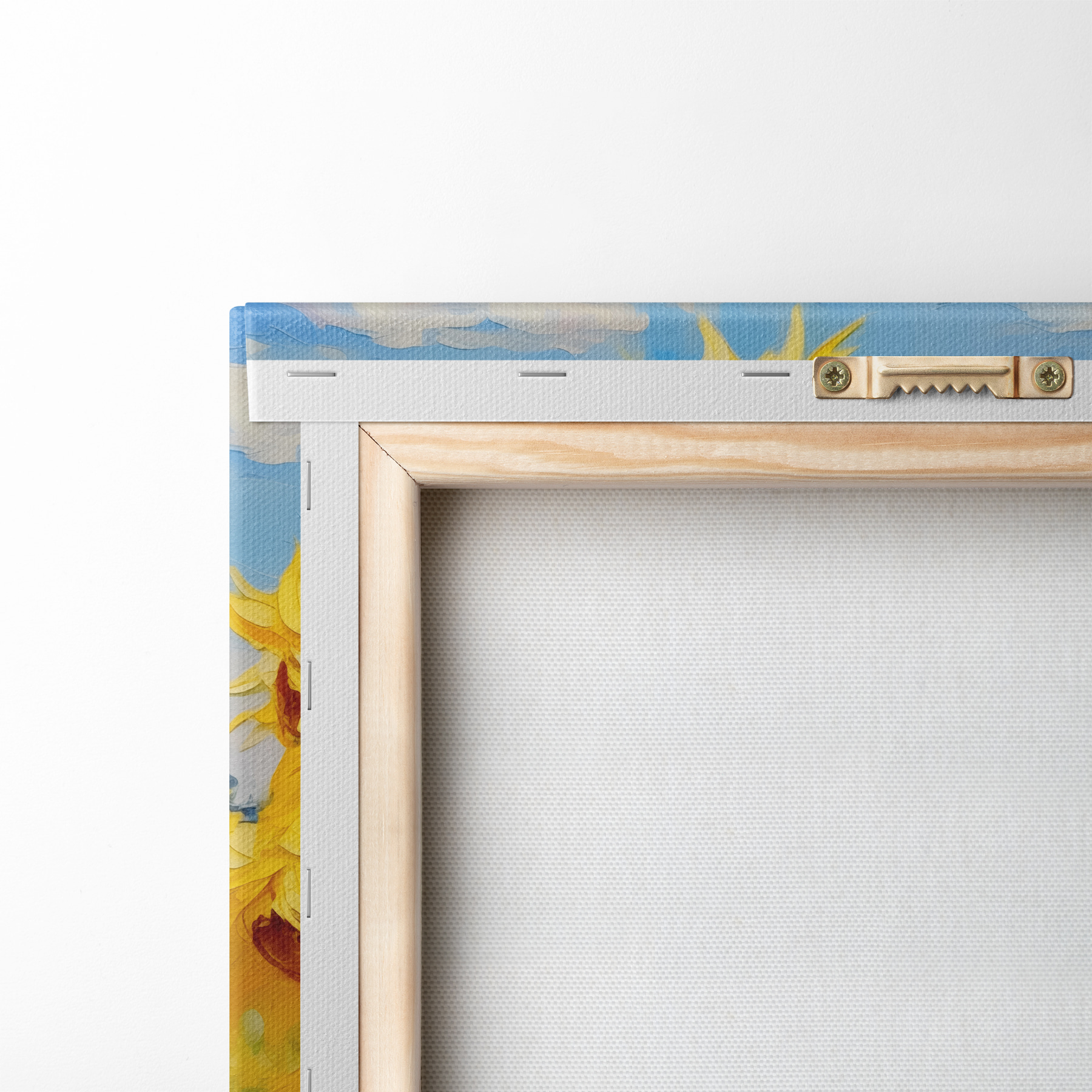 Um die Leinwand auf Keilrahmen zu spannen, ohne das Bild zu beschädigen, verwenden wir ein gespiegeltes Bild.