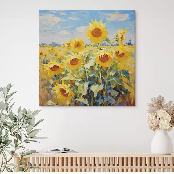 Wandbilder Ölgemälde „Feld der Sonnenblumen“, Farbe Gelb und Blau s38953