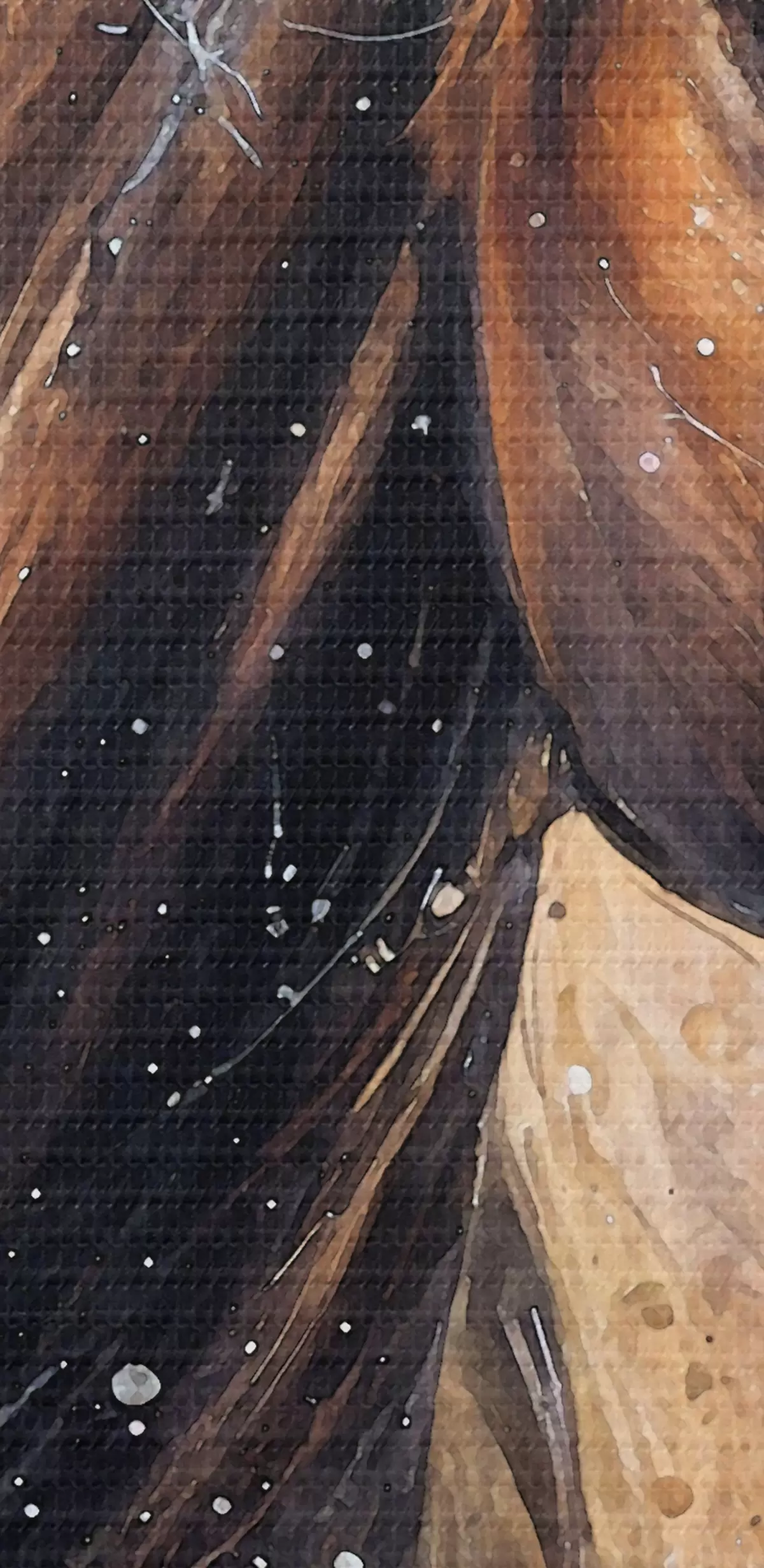Um die Leinwand auf Keilrahmen zu spannen, ohne das Bild zu beschädigen, verwenden wir ein gespiegeltes Bild.