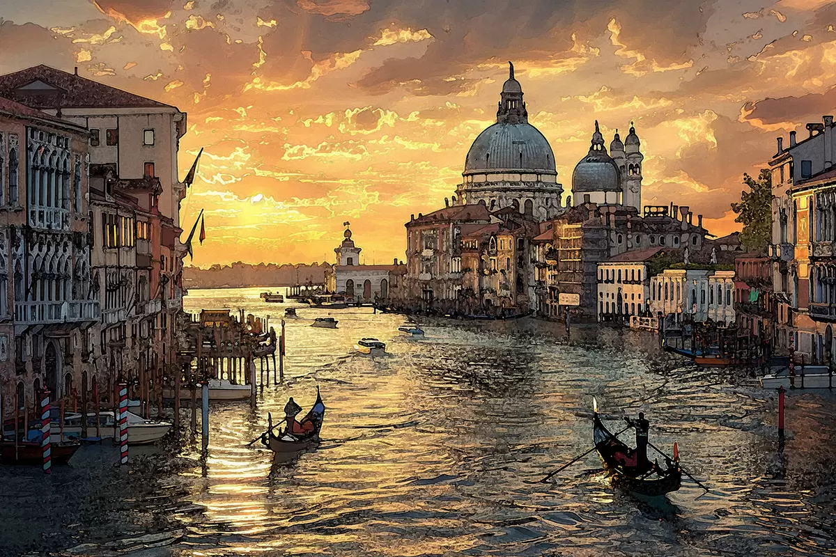 Wandbilder Ein malerisches Gemälde des Canale Grande in Venedig, Italien bei Sonnenuntergang. s38963