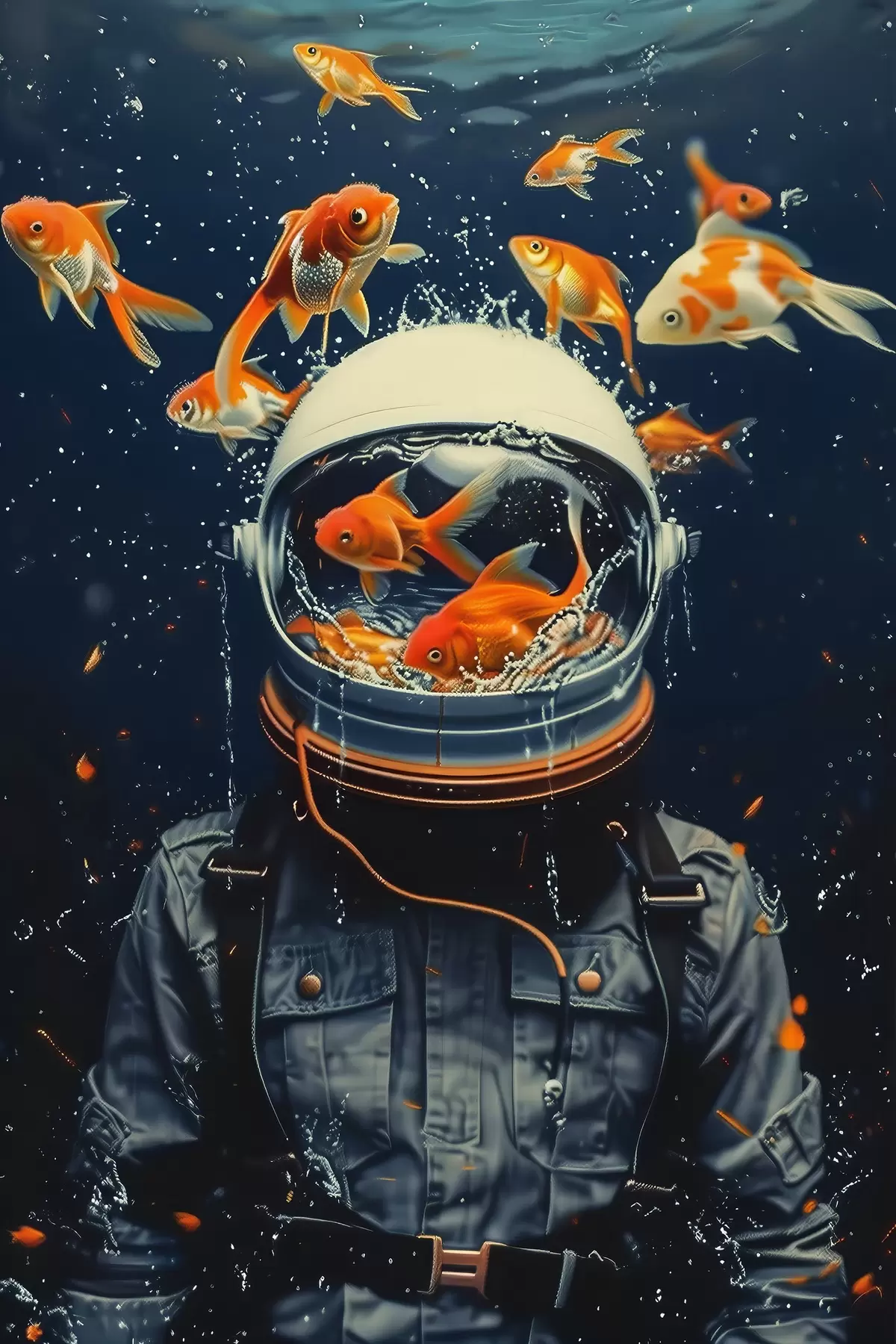 Wandbilder Astronaut schwimmt mit verspielten Fischen s39041