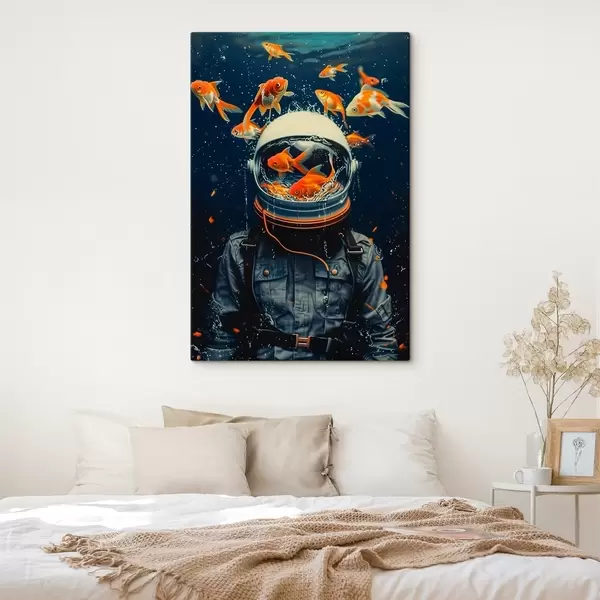 Wandbilder Astronaut schwimmt mit verspielten Fischen s39041