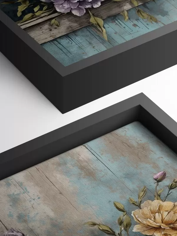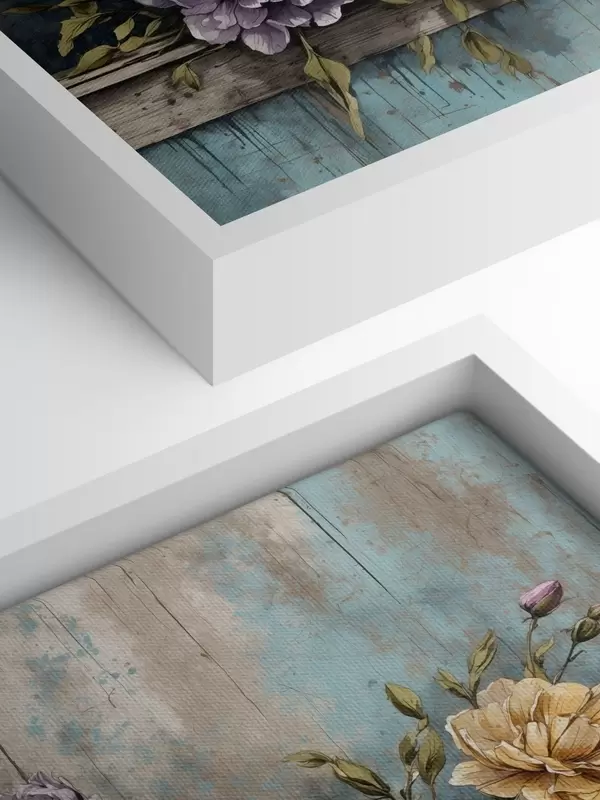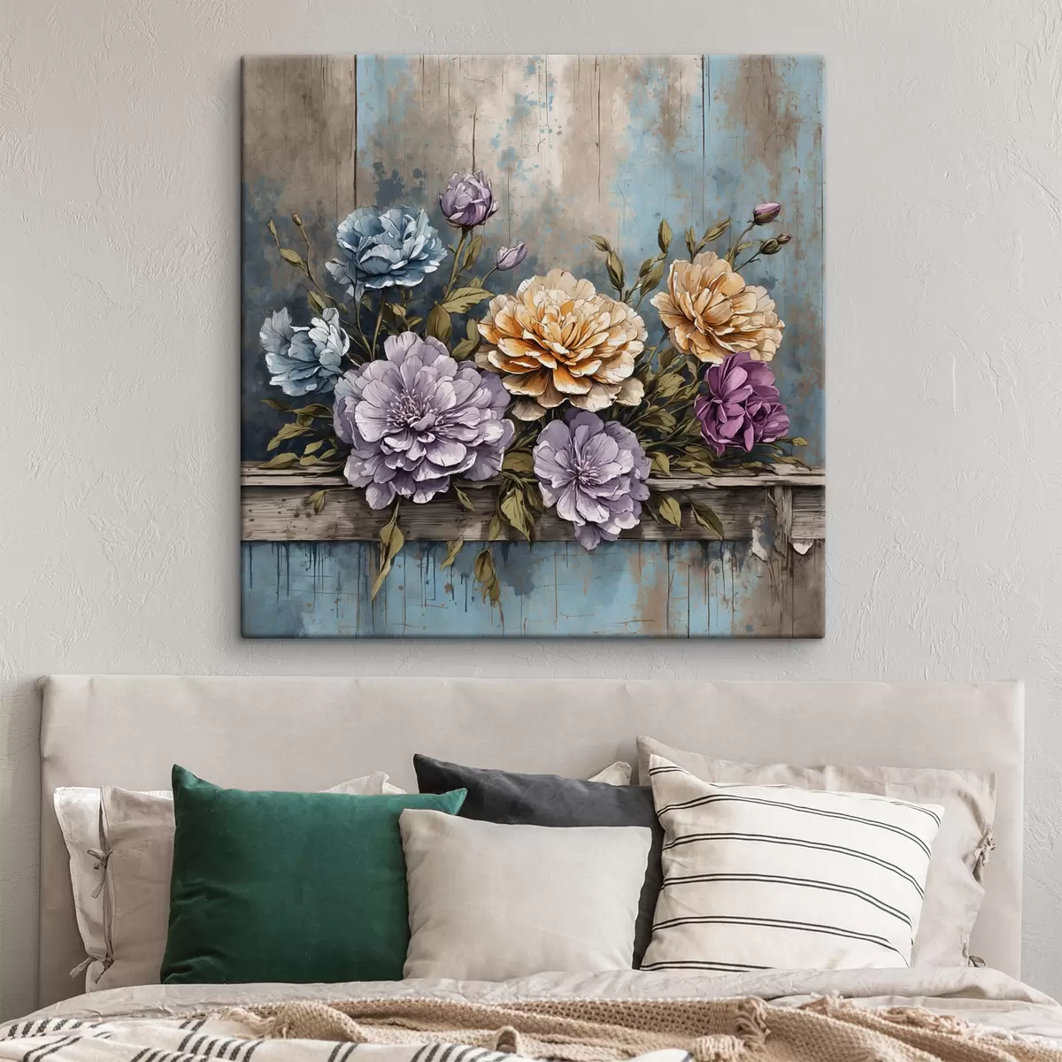 Wandbilder Blumen und Blätter auf altem Holzregal Art. s39169