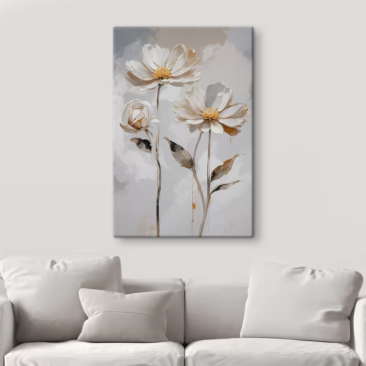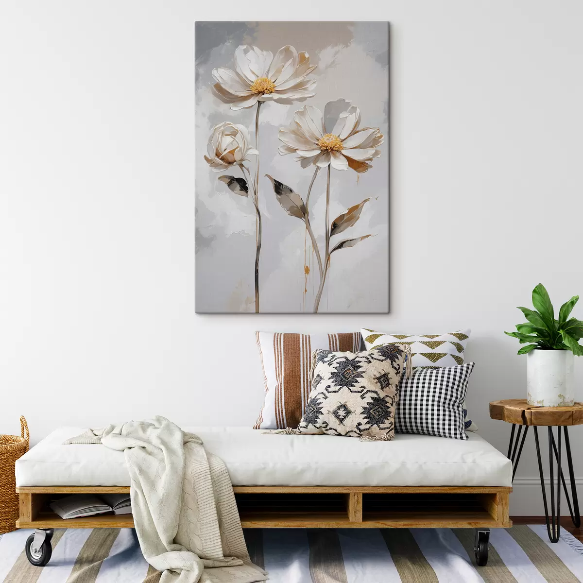 Wandbilder Weiße Blumen auf weiß-grauem Hintergrund s39174