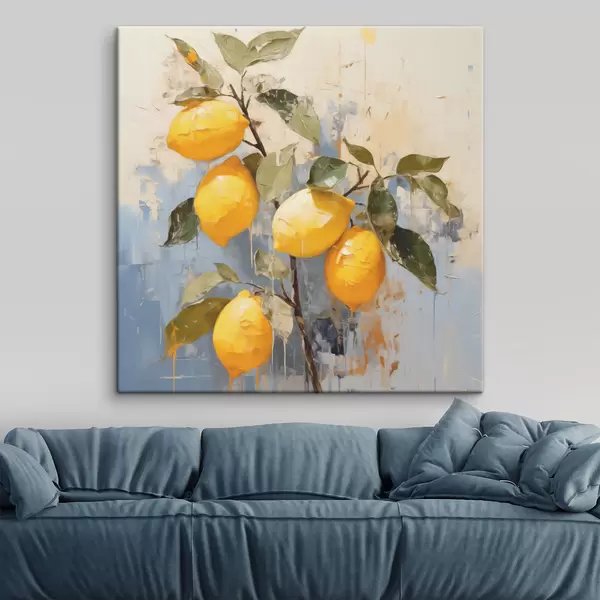 Wandbilder Zweig mit reifen Zitronen Ölgemälde abstrakte Kunst, gelb, blau und grün Art. s39186