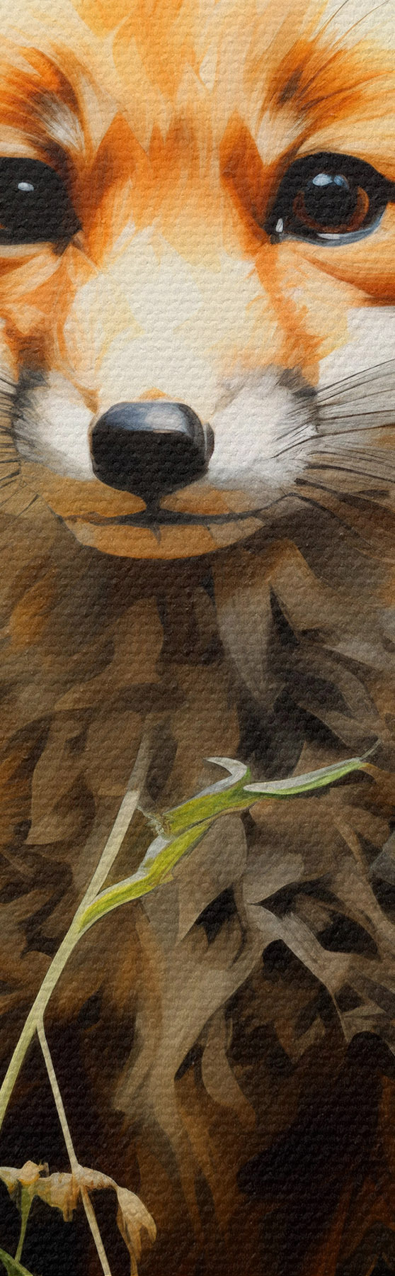 Wandbilder Roter Fuchs sitzt im trockenen Gras auf einem grünen Hintergrund Ölgemälde Art. s39191