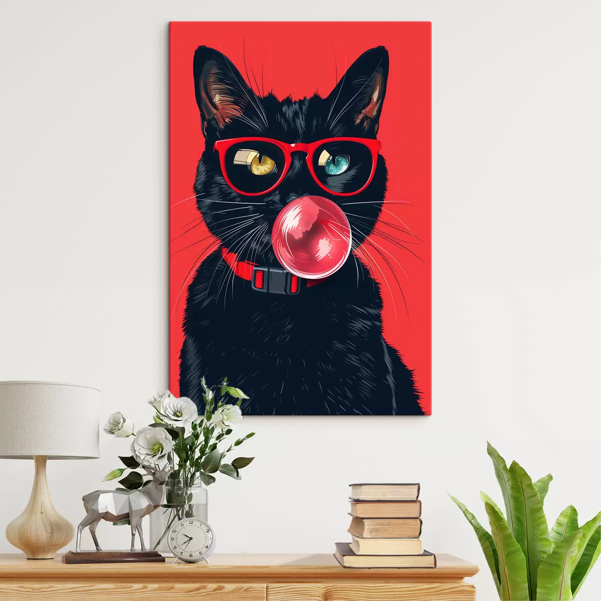 Wandbilder Schwarze Katze mit Brille Art. s39224