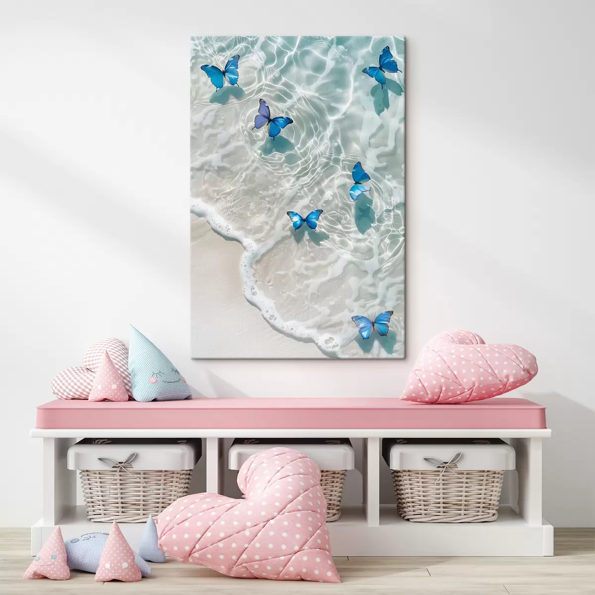 Wandbilder Blaue Schmetterlinge auf einer Meereswelle Art. s39228