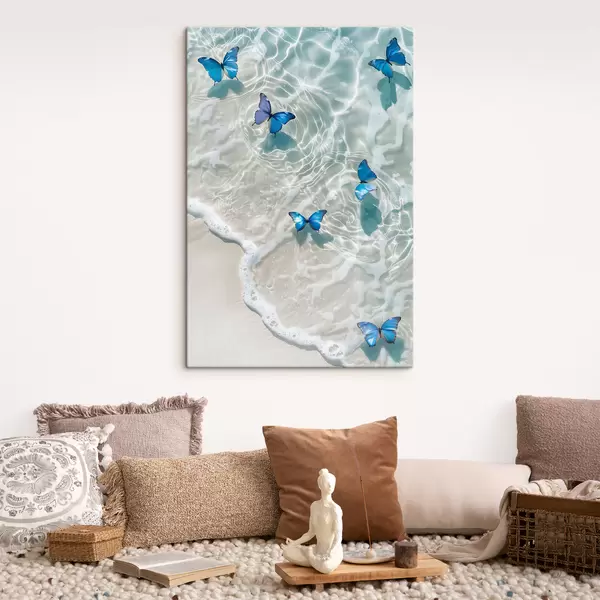 Wandbilder Blaue Schmetterlinge auf einer Meereswelle Art. s39228
