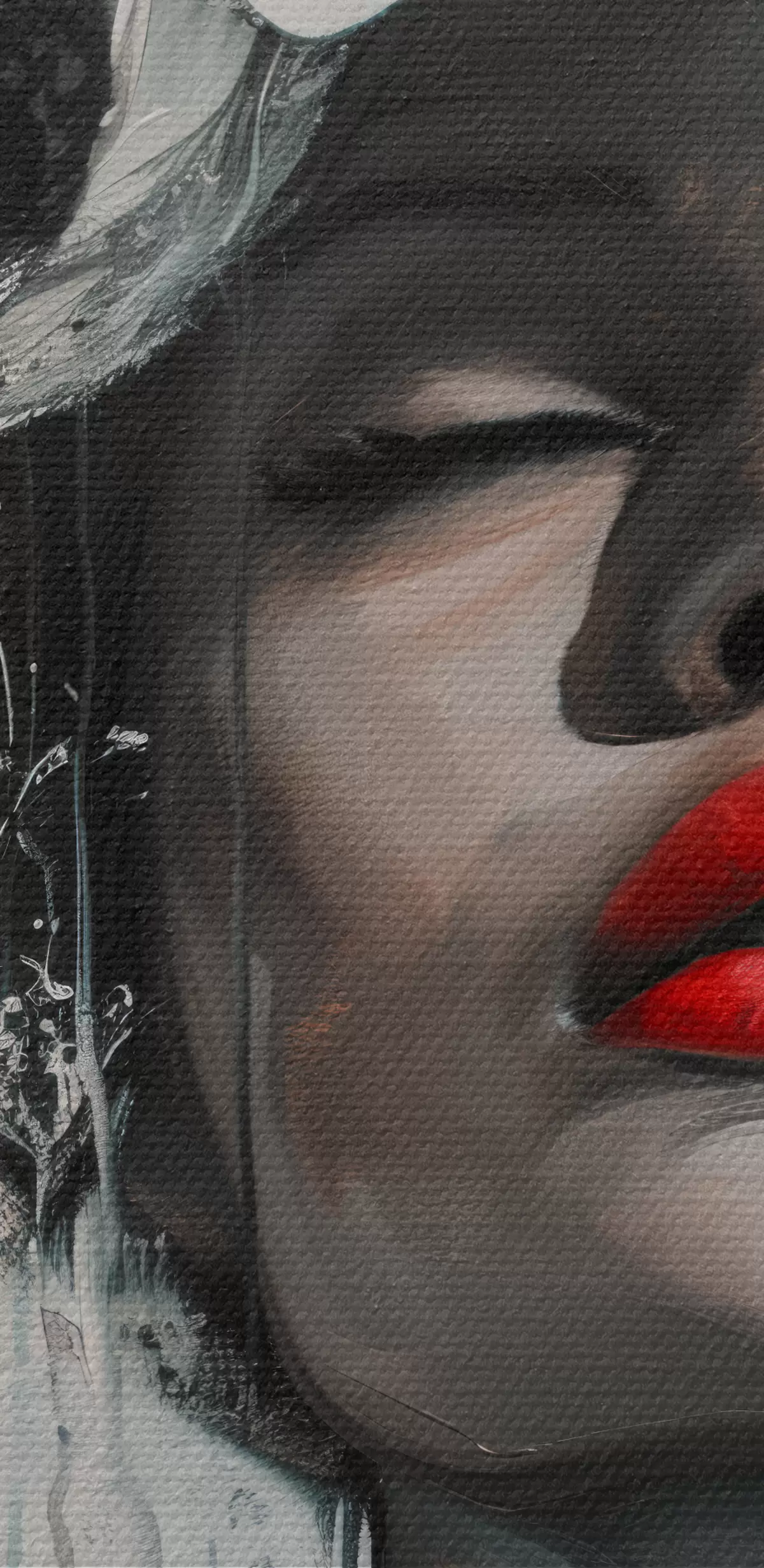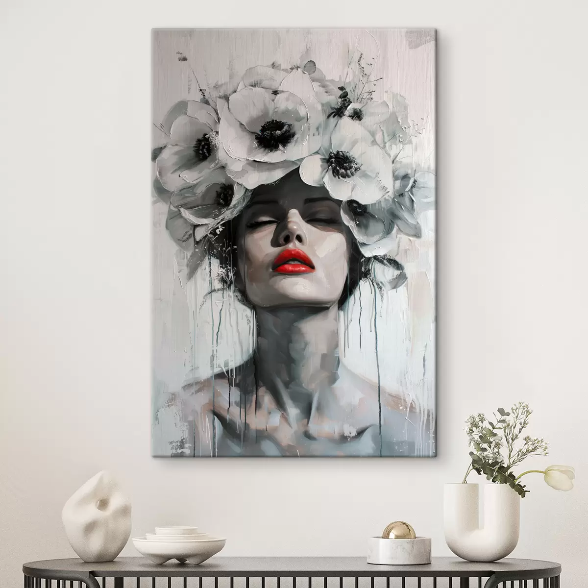 Wandbilder Portrait einer Frau mit Blumen im Haar und roten Lippen Art. s39253