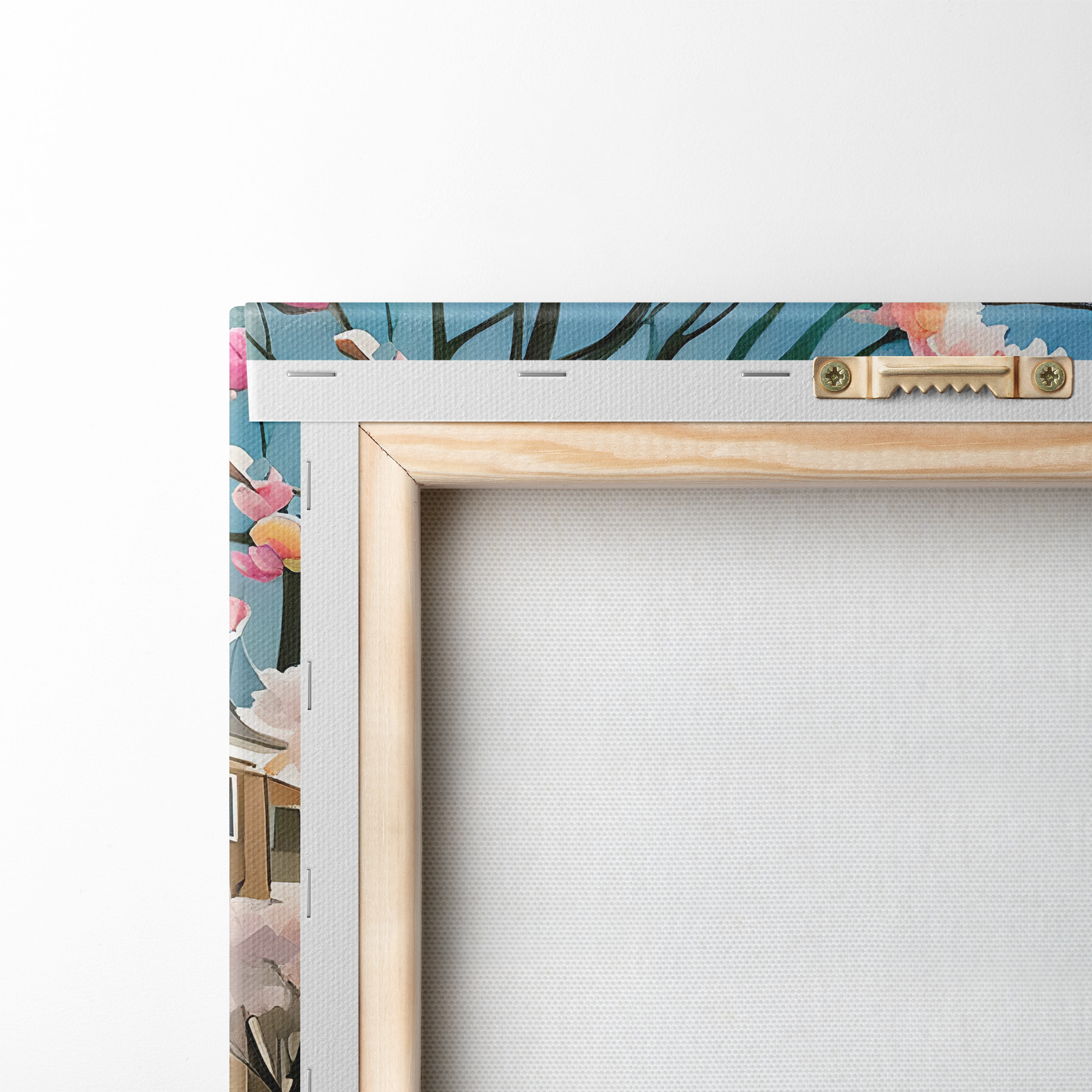 Um die Leinwand auf Keilrahmen zu spannen, ohne das Bild zu beschädigen, verwenden wir ein gespiegeltes Bild.