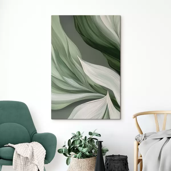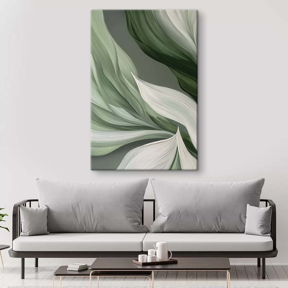 Wandbilder voluminöser abstrakter Schleier in Weiß- und Grüntönen Art. s39327