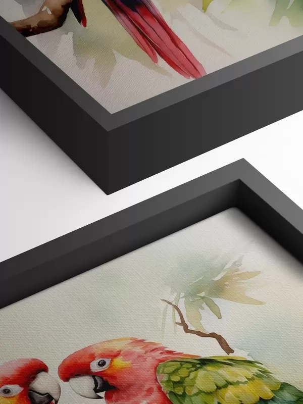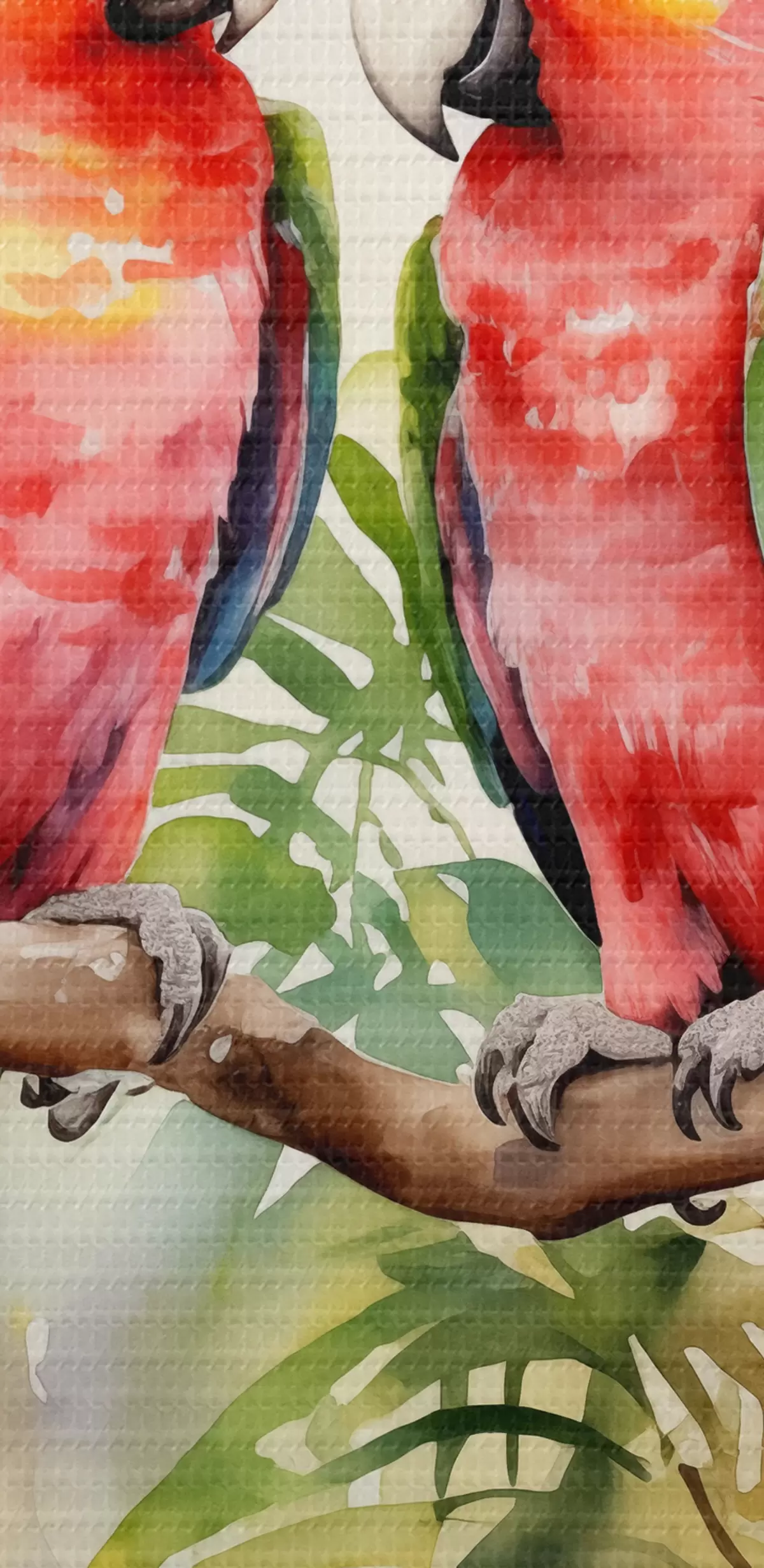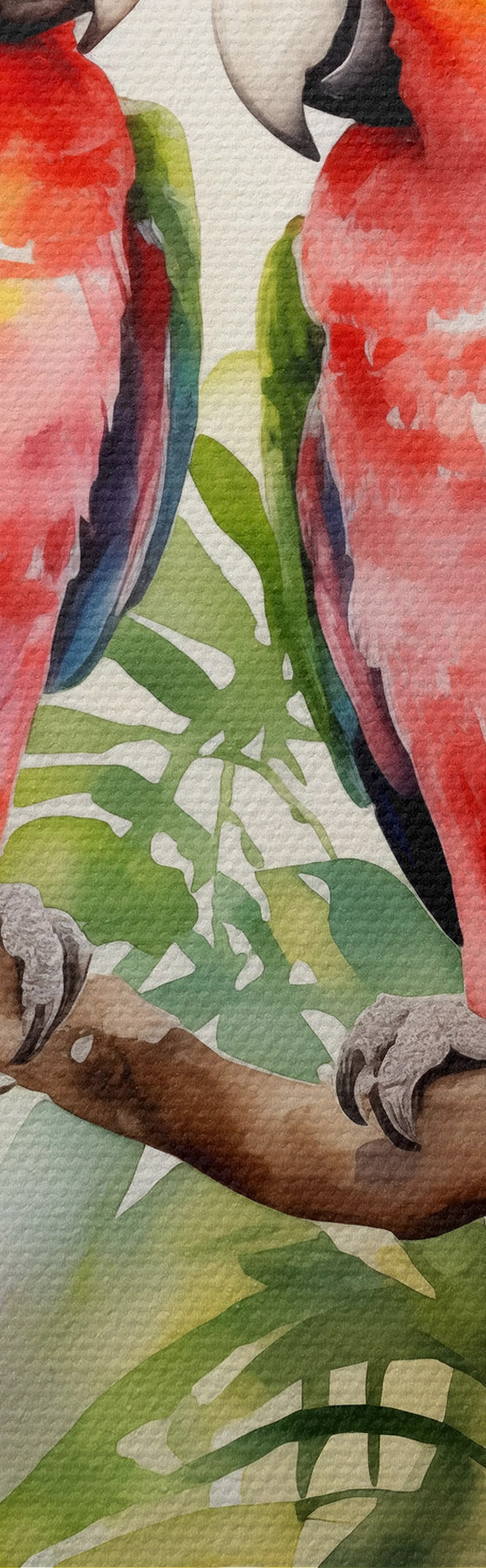 Wandbilder Zwei helle Ara Papageien sitzen auf einem Ast Aquarell Art. s39333