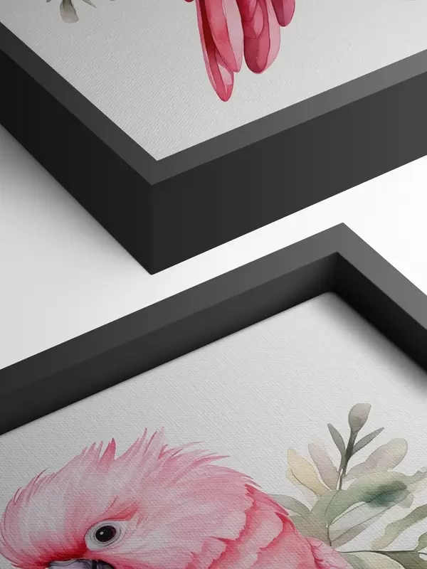 Wandbilder Rosa Kakadu Papagei sitzt auf einem Zweig Aquarell Art. s39334