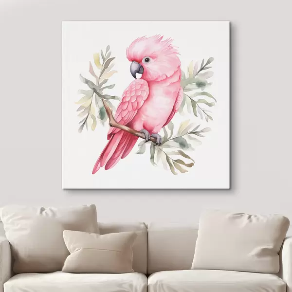 Wandbilder Rosa Kakadu Papagei sitzt auf einem Zweig Aquarell s39334