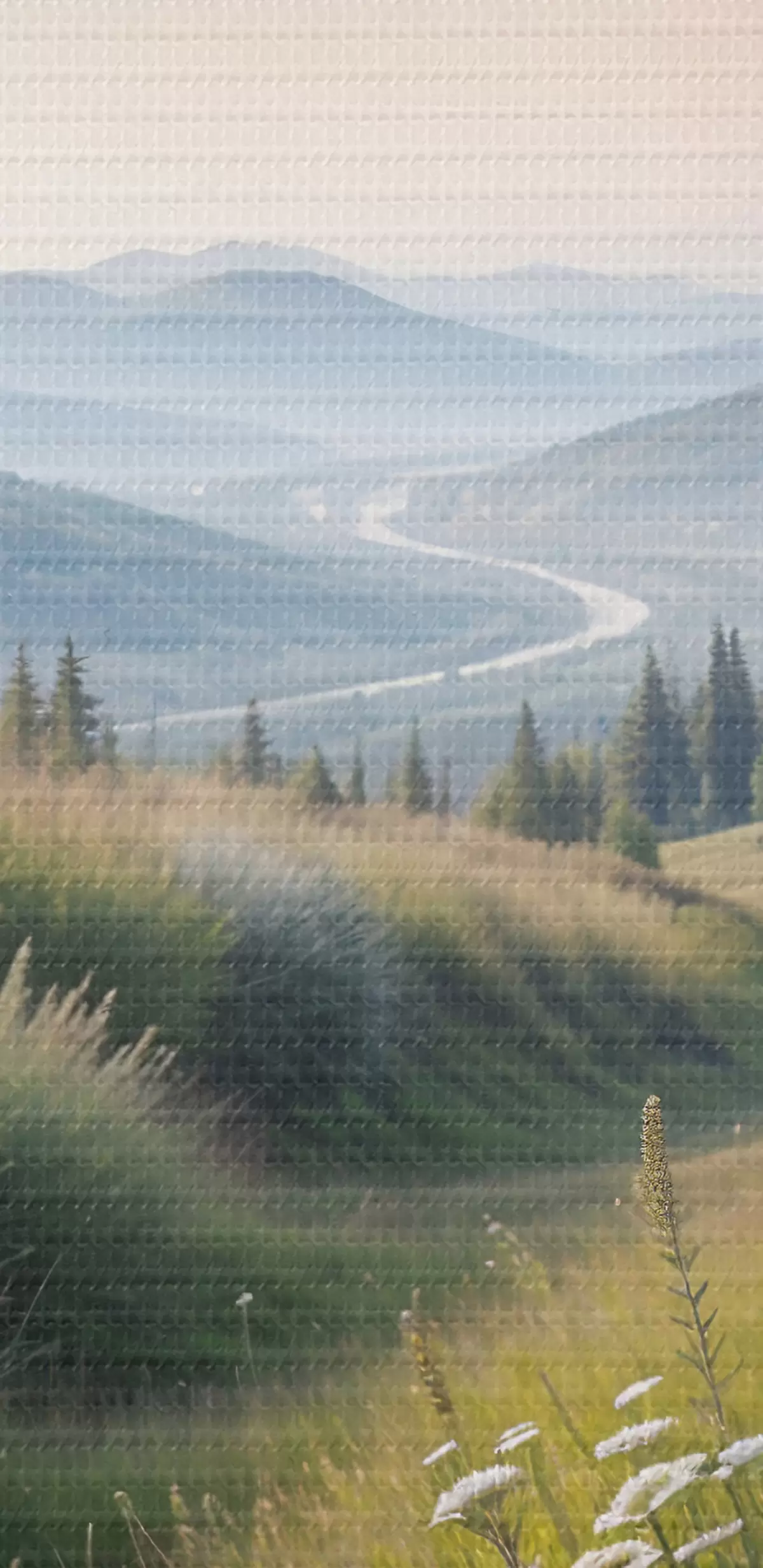 Wandbilder Berglandschaft mit einer Graswiese im Vordergrund voller bunter Wildblumen s39382