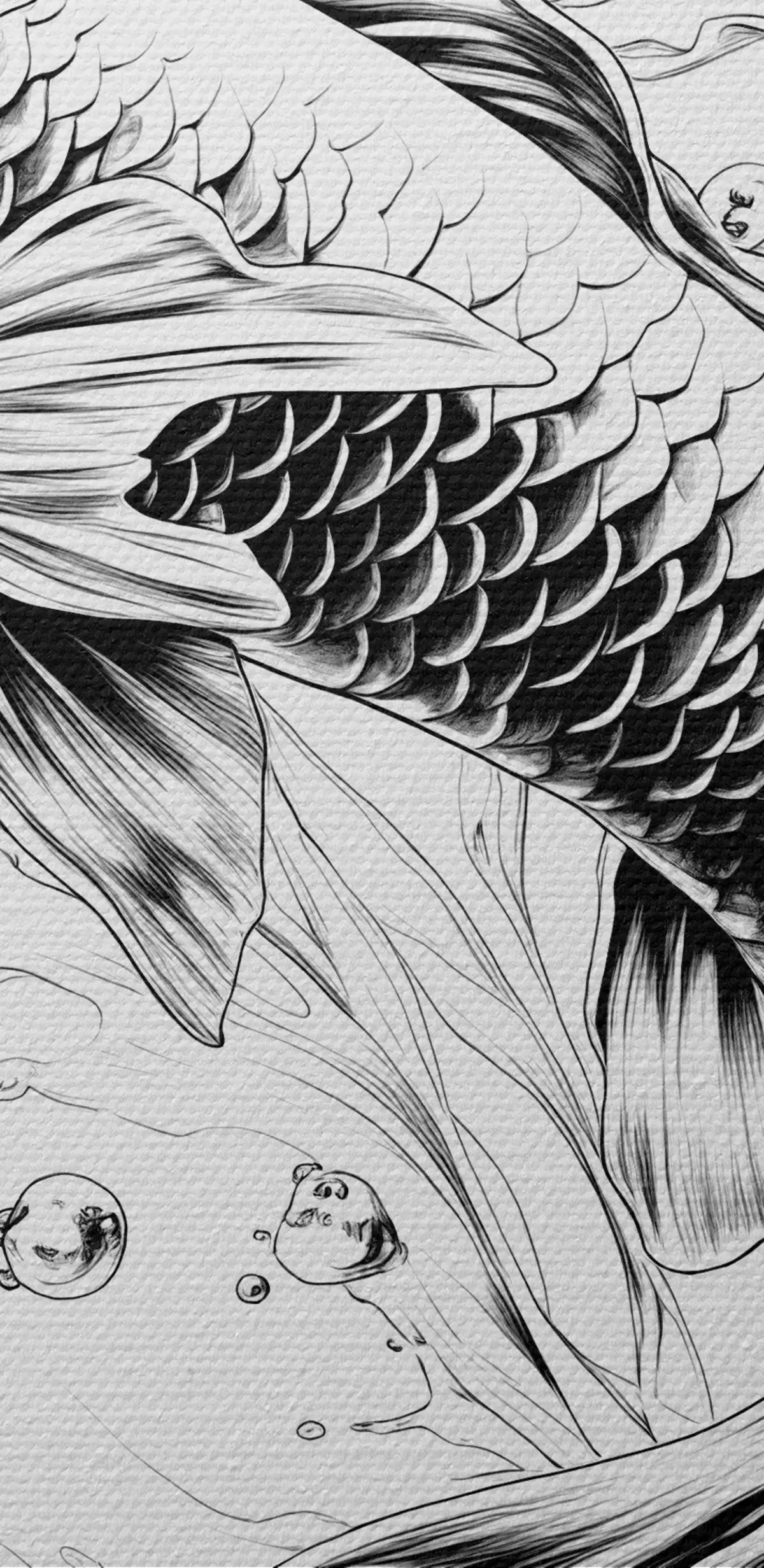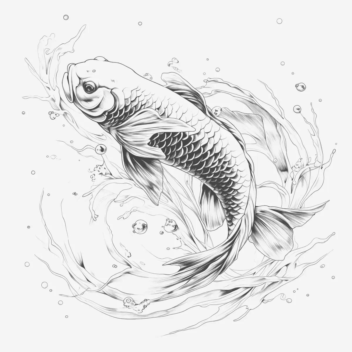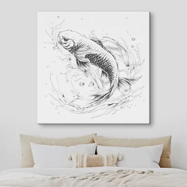Wandbilder Monochrome Strichzeichnung eines Koi-Fisches s39433