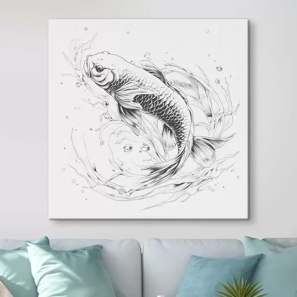 Wandbilder Monochrome Strichzeichnung eines Koi-Fisches s39433