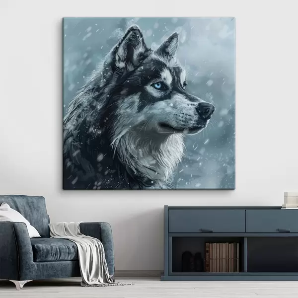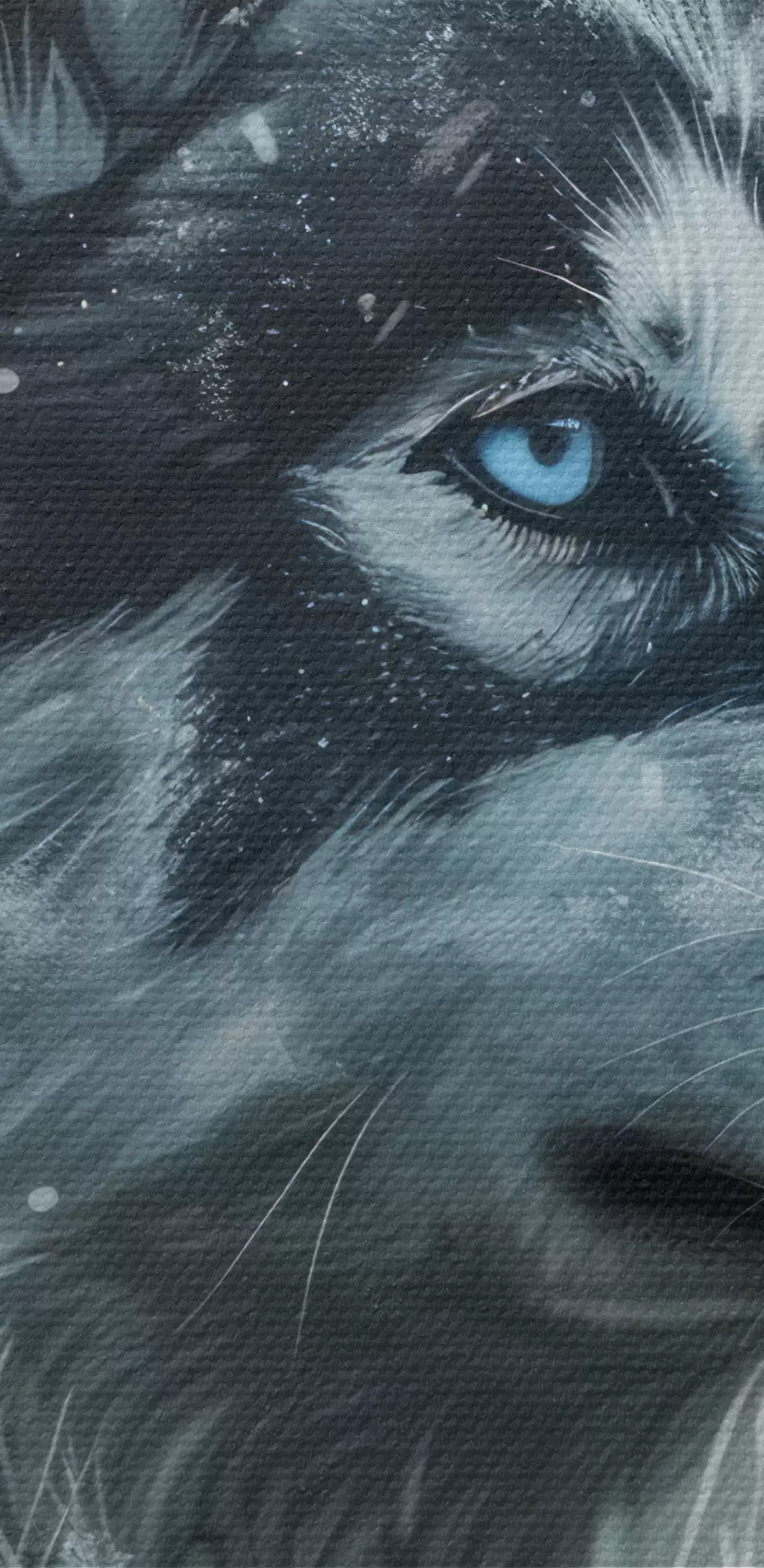 Wandbilder Husky mit blauen Augen vor winterblauem Hintergrund Art. s39462