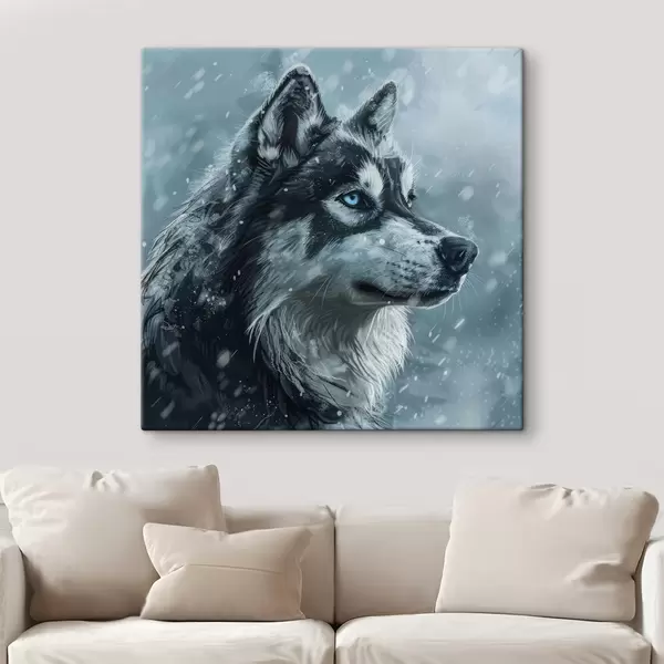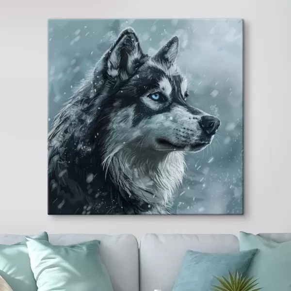 Wandbilder Husky mit blauen Augen vor winterblauem Hintergrund Art. s39462