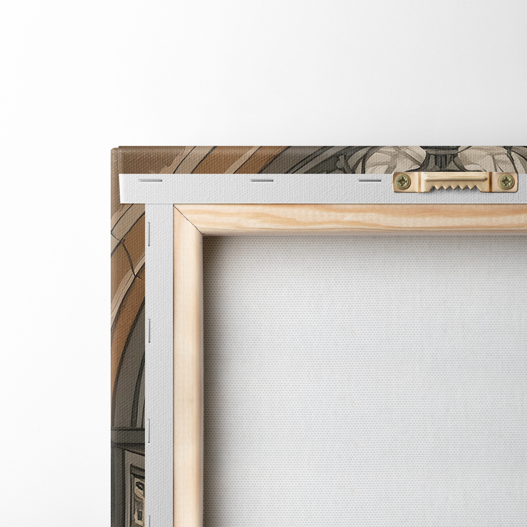 Um die Leinwand auf Keilrahmen zu spannen, ohne das Bild zu beschädigen, verwenden wir ein gespiegeltes Bild.