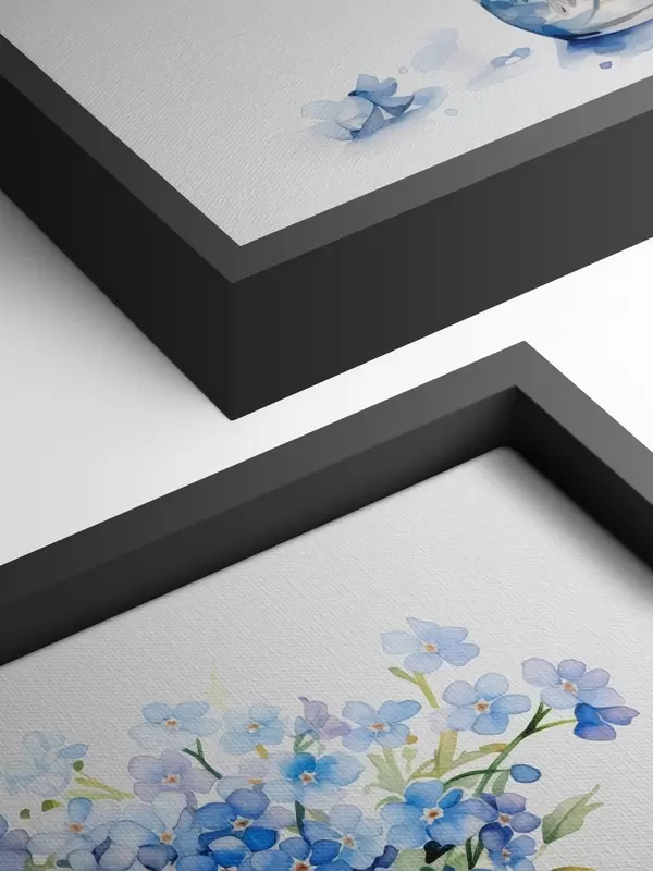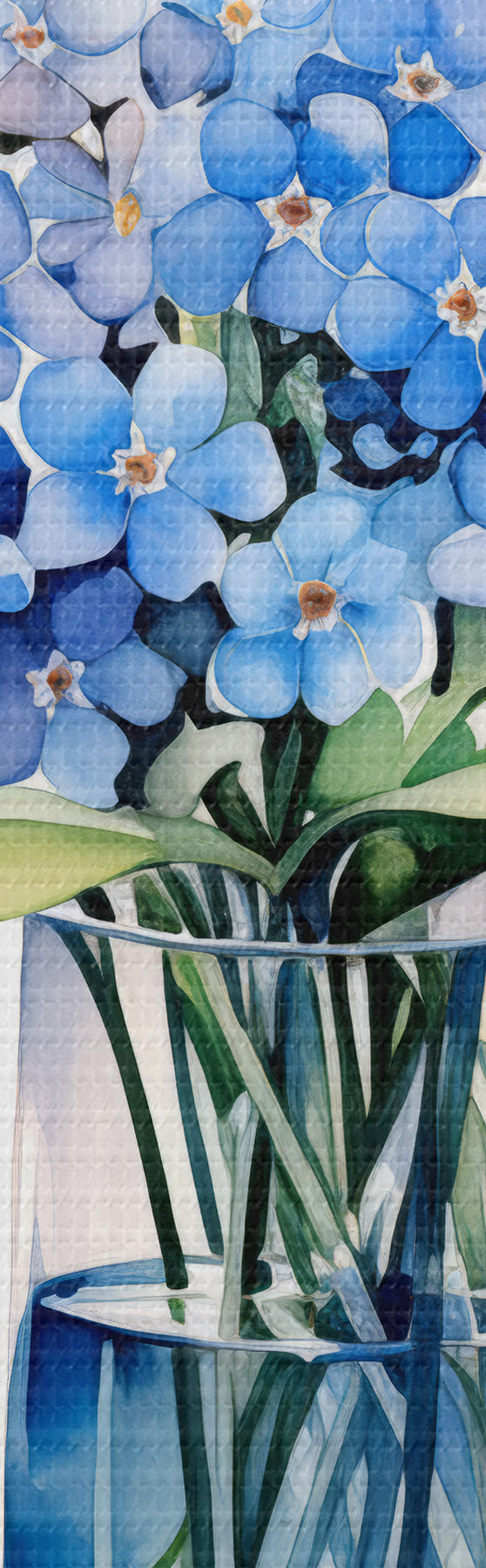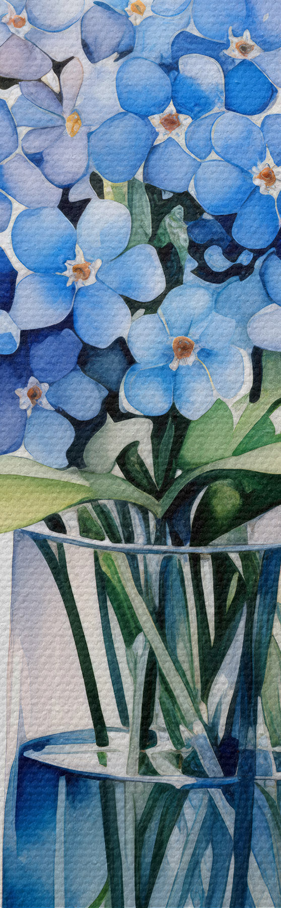 Wandbilder Blumenstrauß aus blauen Wildblumen in einer transparenten Vase Aquarell Art. s39564