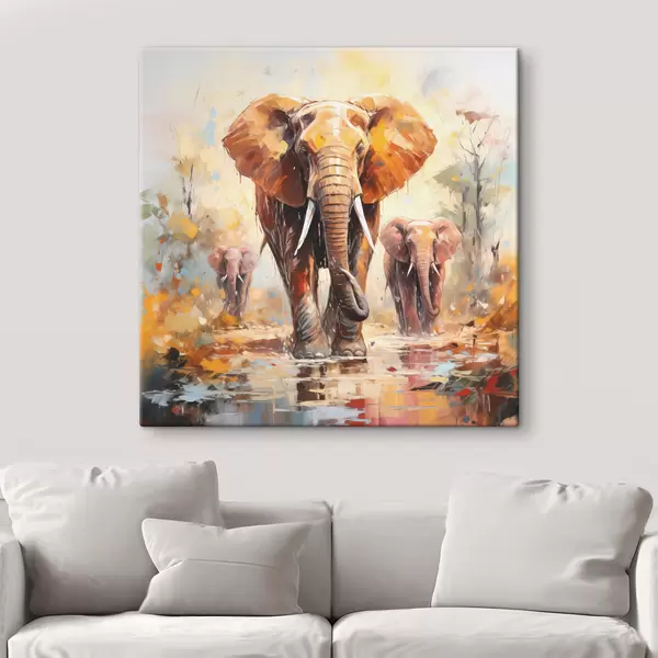 Wandbilder Eine Herde Elefanten in der Savanne, Ölgemälde, abstrakte Kunst Art. s39573