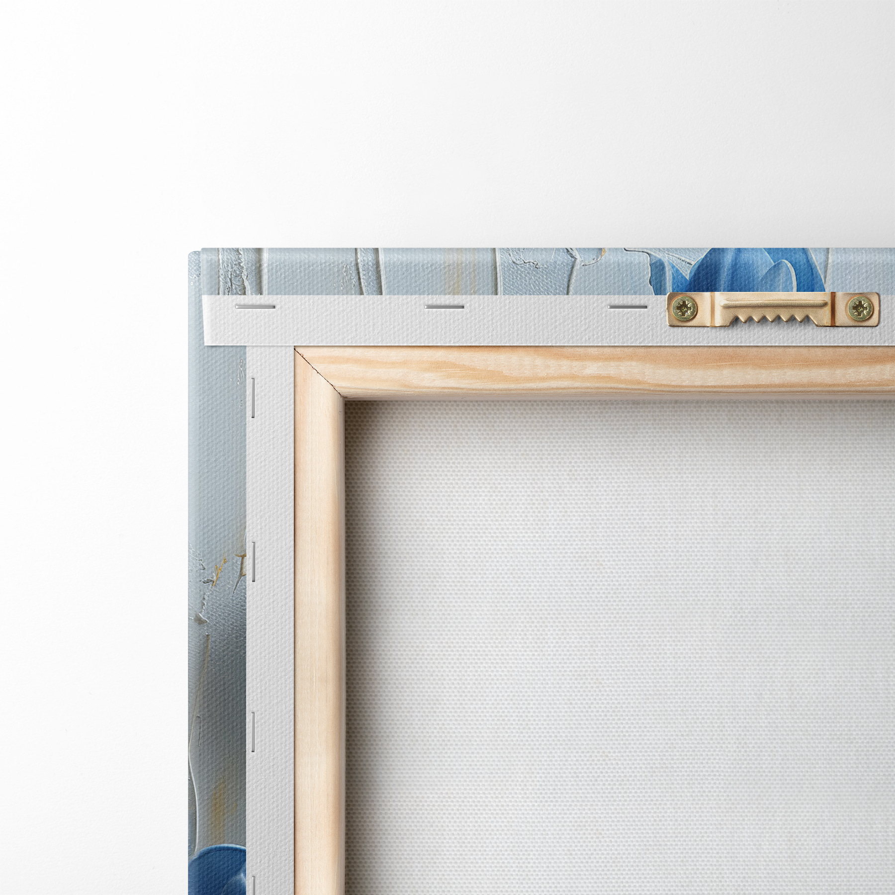 Um die Leinwand auf Keilrahmen zu spannen, ohne das Bild zu beschädigen, verwenden wir ein gespiegeltes Bild.