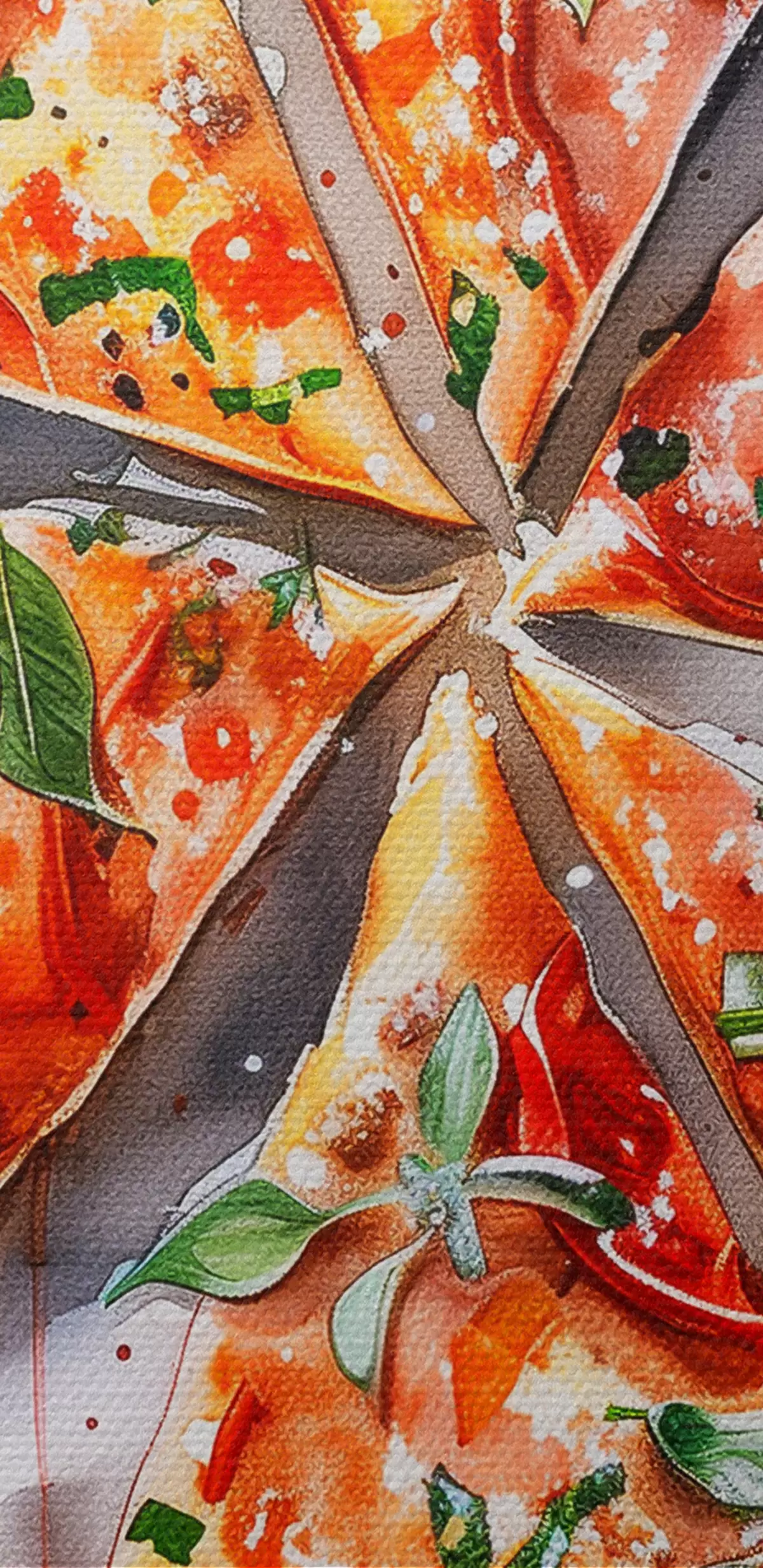 Wandbilder Aquarellpizza, lecker, Tomaten und Käse, Lebensmittelkunst, Holztisch Art. s39704