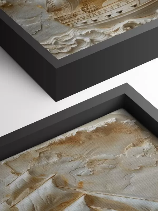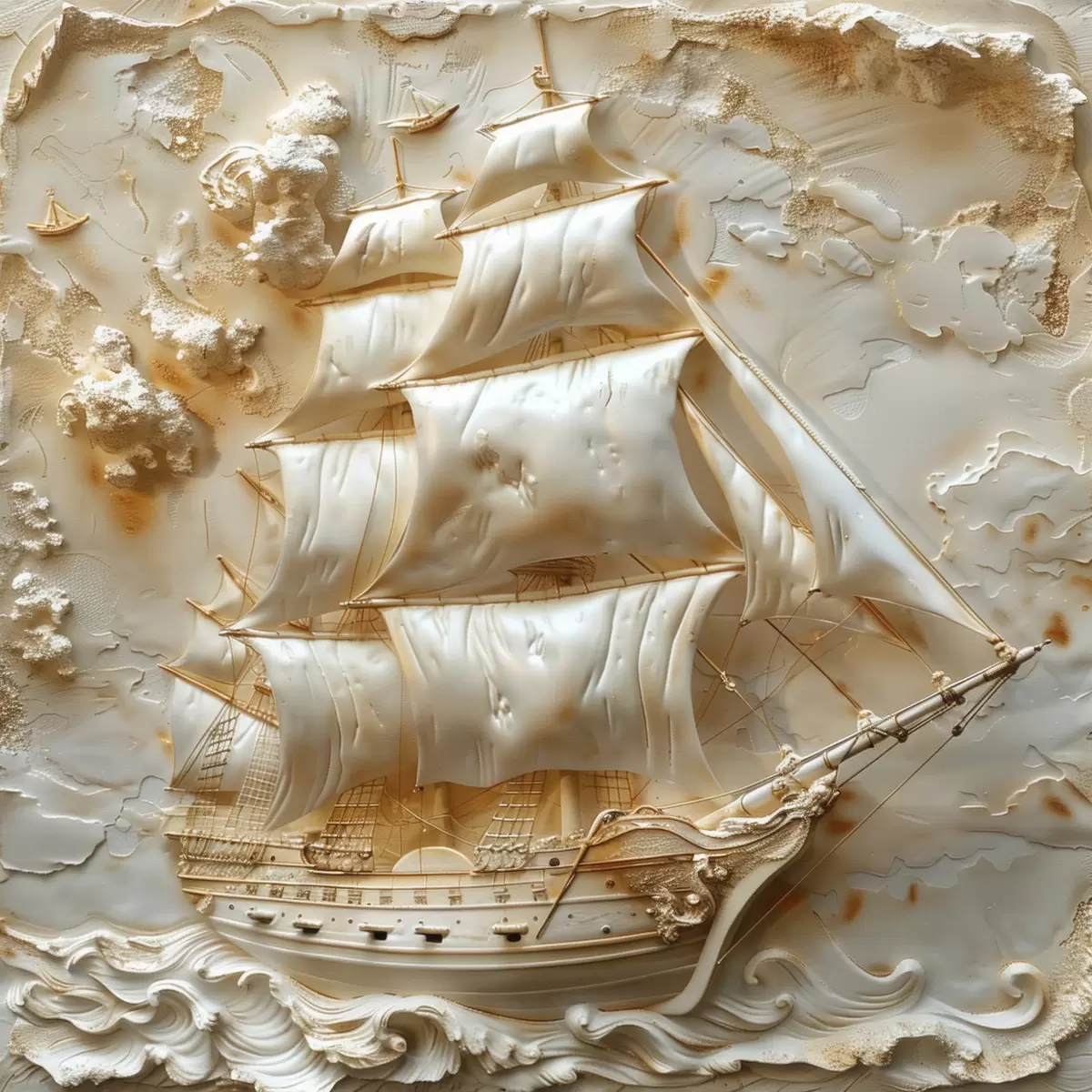 Wandbilder Flachrelief eines Schiffes, das auf dem Meer segelt s39757